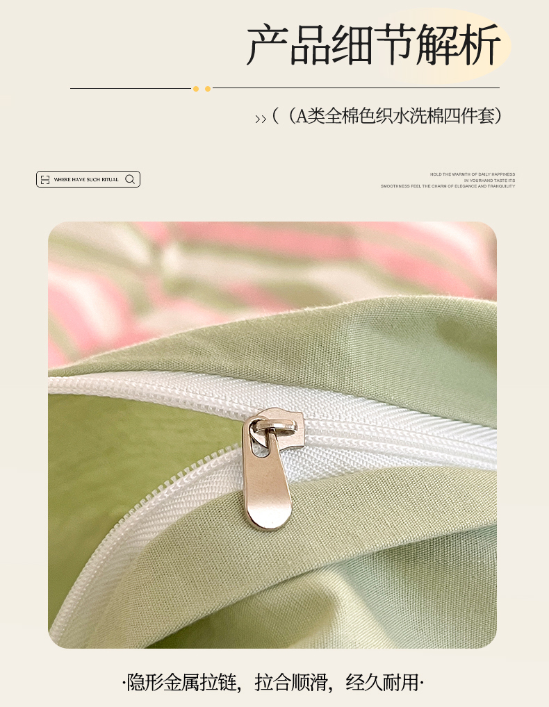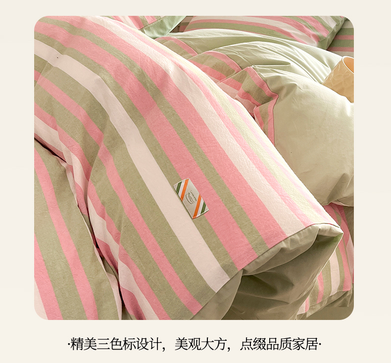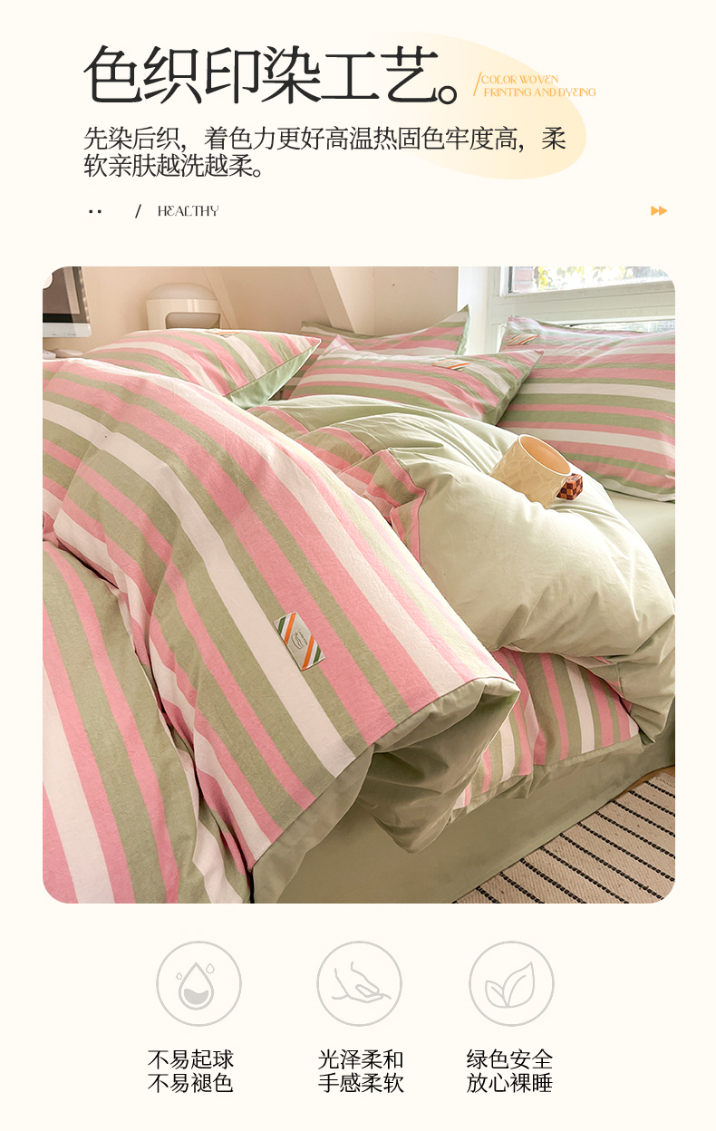 商品名称:蓝米卡夫 2025新品-无印风全棉色织水洗棉四件套 七彩-粉芋