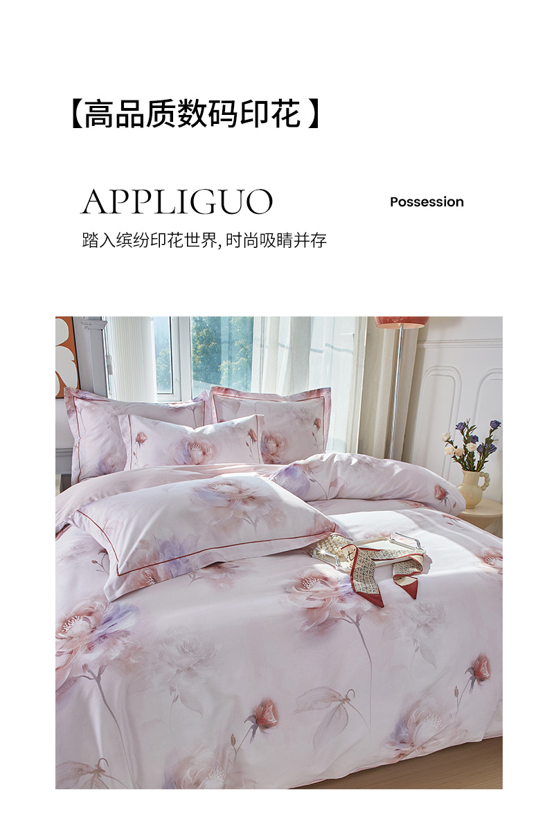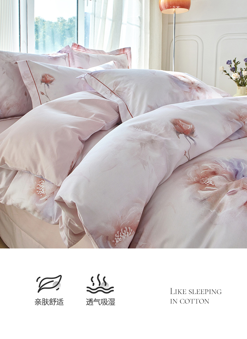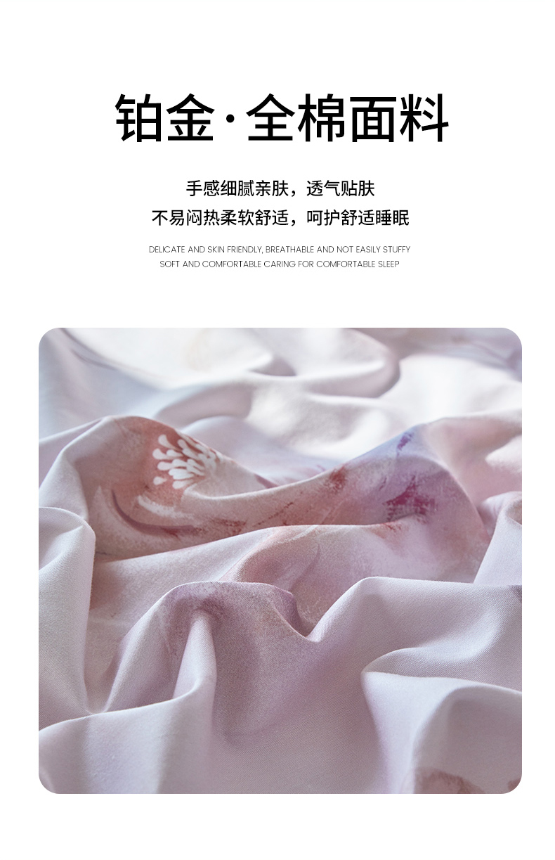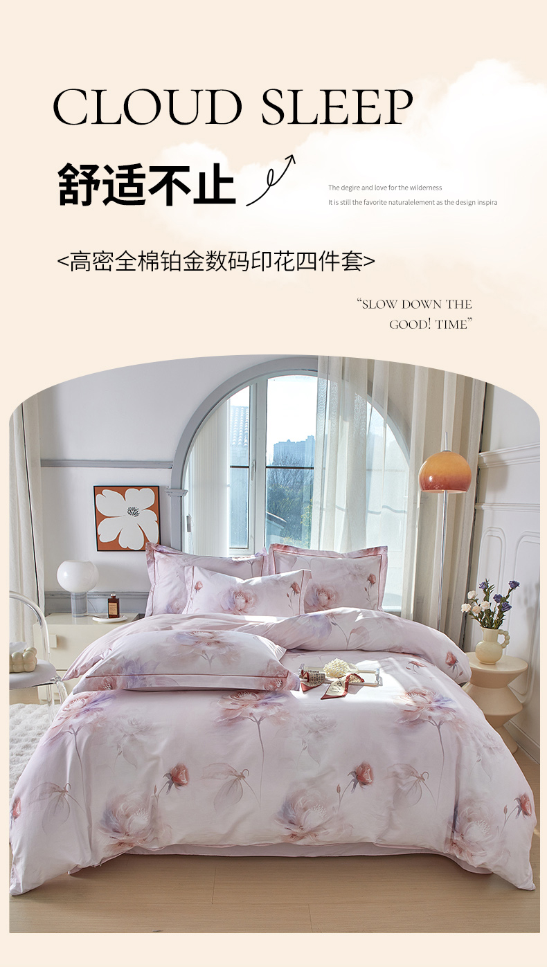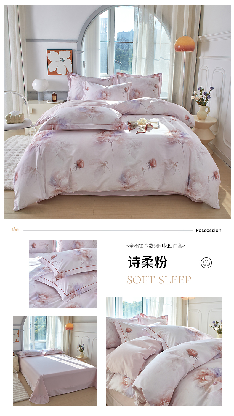 商品名称:启航家居 2025春夏全棉铂金棉数码印花四件套 诗柔粉
