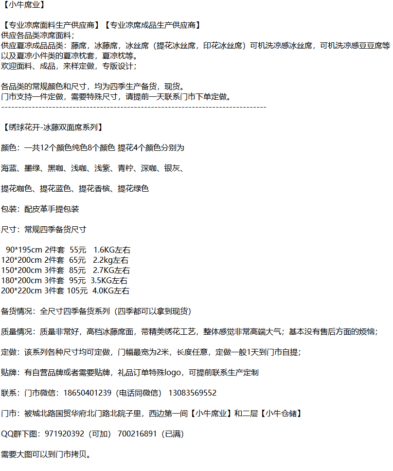 (总)小牛席业 2023新款对角绣花冰藤双面席凉席竹席冰丝席空调席,对角绣花-冰藤双面席海蓝,对角绣花-冰藤双面席黑咖,对角绣花-冰藤双面席浅咖,对角绣花-冰藤双面席青柠,对角绣花-冰藤双面席深咖,对角绣花-冰藤双面席银灰,对角绣花-冰藤双面席紫色,对角绣花-渐变冰藤咖色,对角绣花-渐变冰藤墨绿,对角绣花-渐变冰藤浅灰,对角绣花-渐变冰藤紫色