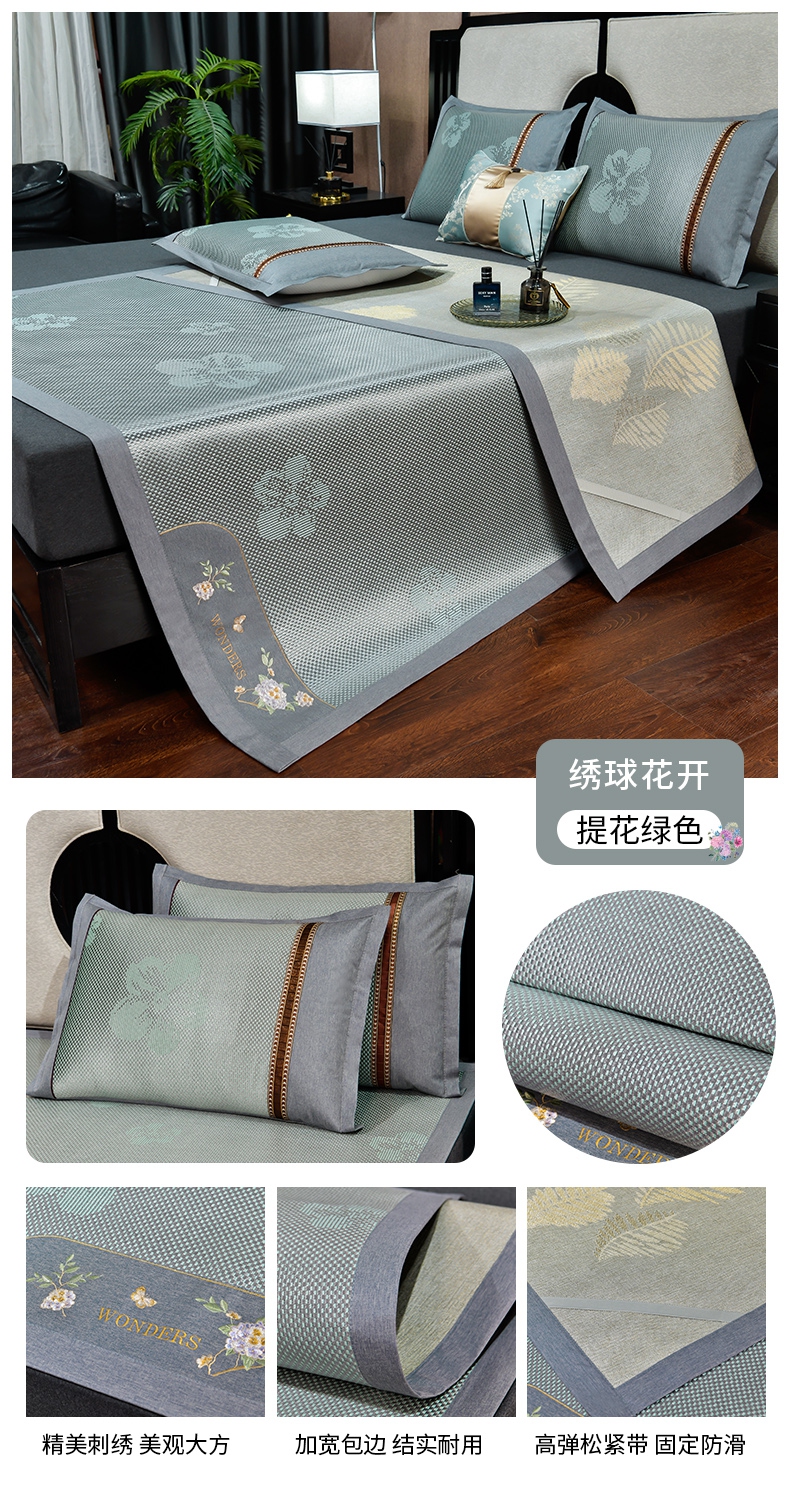 (总)2023新款超精密冰丝席-小斜纹系列-床笠款藤席凉席竹席,粉色,蓝色,绿色,银灰