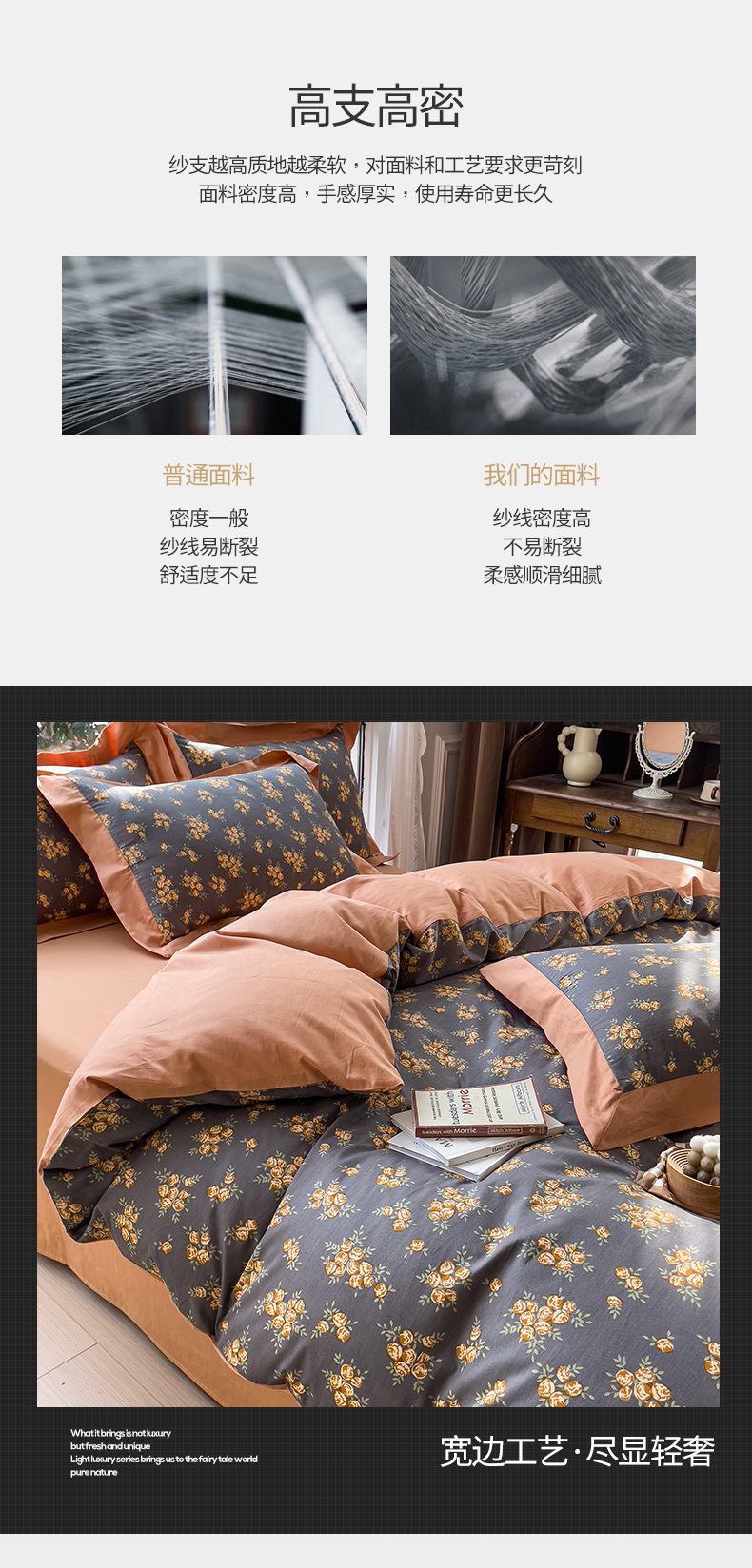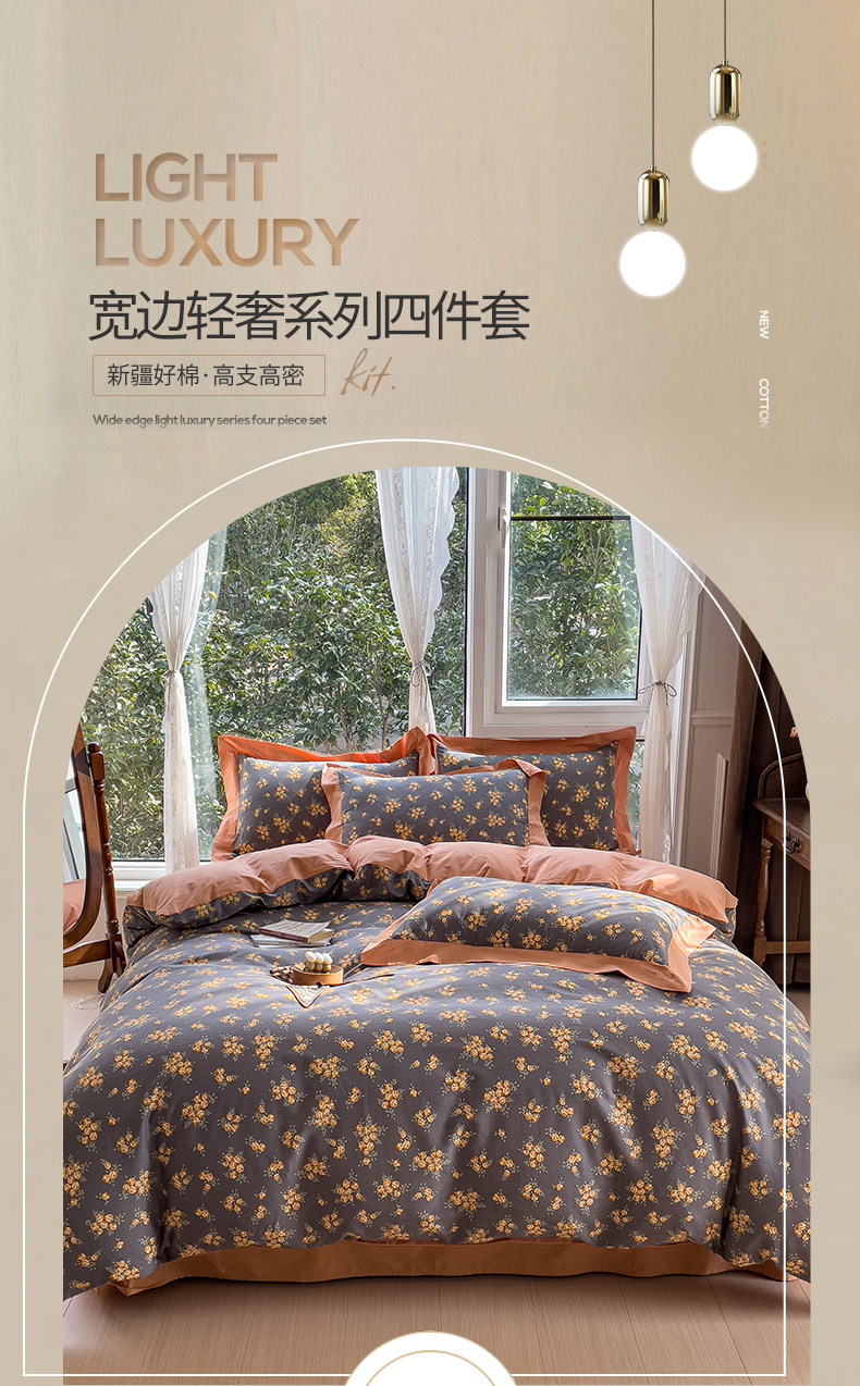 KA家纺 2025新款宽边轻奢系列全棉四件套 芳菲满园