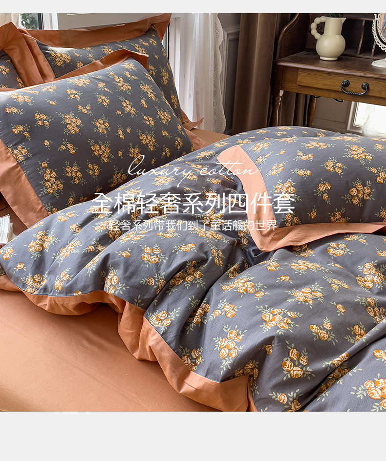 商品名称:KA家纺 2025新款宽边轻奢系列全棉四件套 芳菲满园