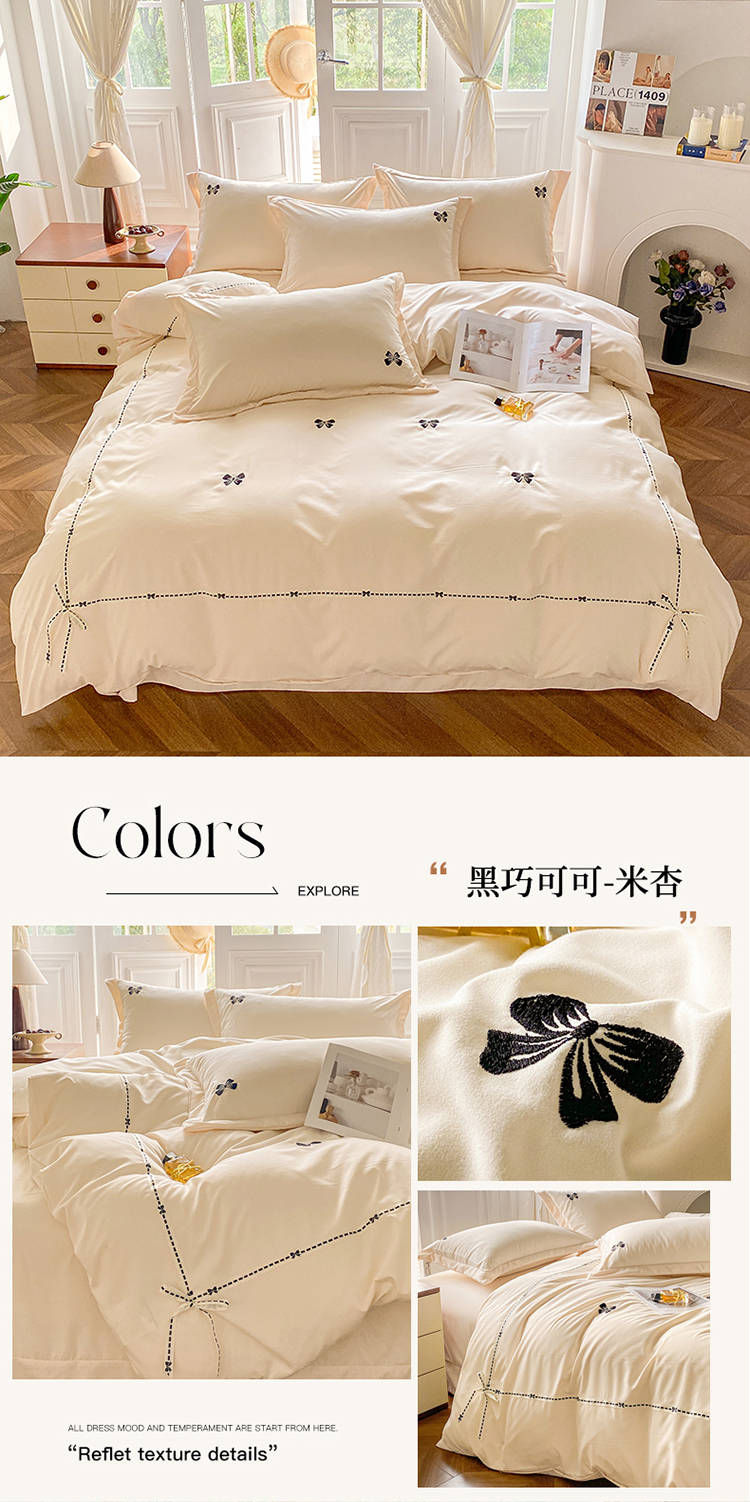 庭笙 2025新款小香风满版刺绣蝴蝶小清新四件套—黑巧可可 米杏