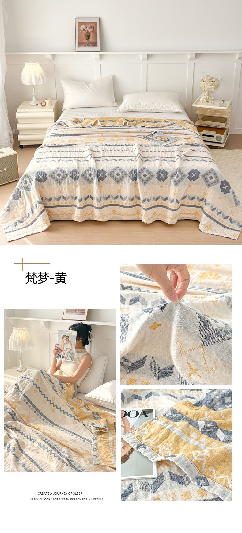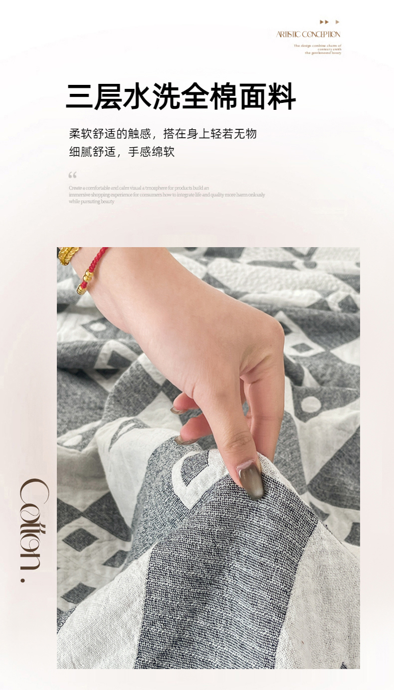 商品名称:悦然毛巾被 2025新款三层水洗全棉毛巾被 双框灰