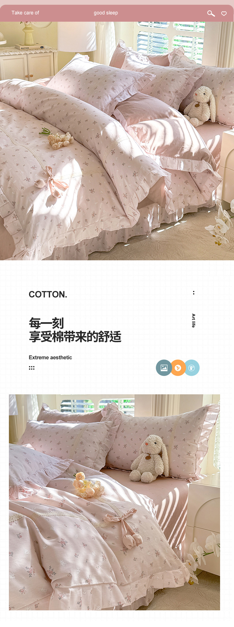 (总)艾唯希2025新款全棉小香风工艺四件套纯棉小花边碎花被套韩式公主风,初朵,春漾,漫丁蔷薇,觅秋,密玲花语,慕归十里,小青藤-米,小樱-咖,雅集,雅蔓花语,樱花,悠然雅居-粉