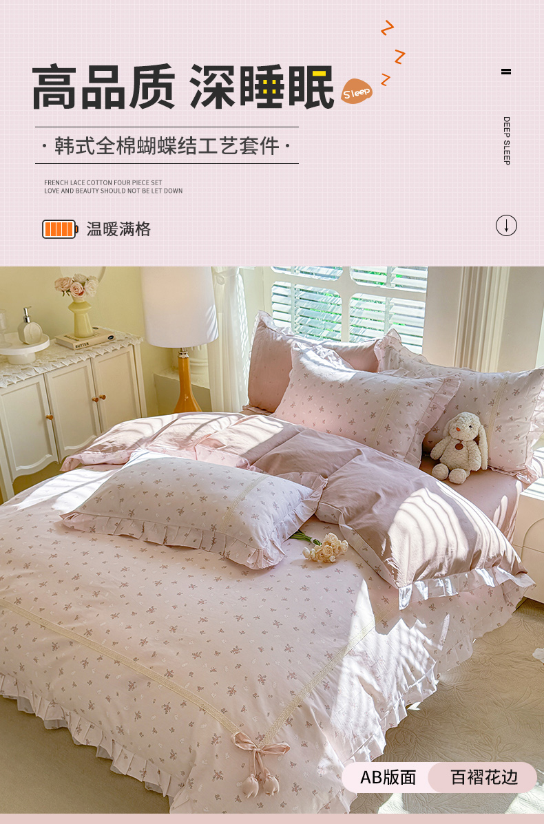 (总)艾唯希家纺2025新款韩式全棉蝴蝶结工艺四件套纯棉公主风花边系列