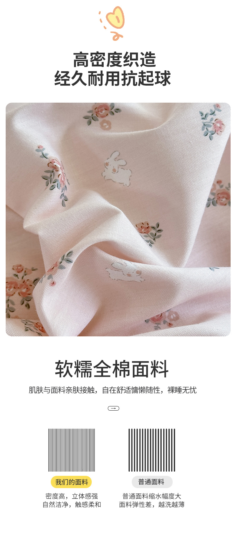 (总)艾唯希家纺 2025新款全棉纯棉色织小提花工艺四件套-开心兔系列,开心兔-粉,开心兔-灰