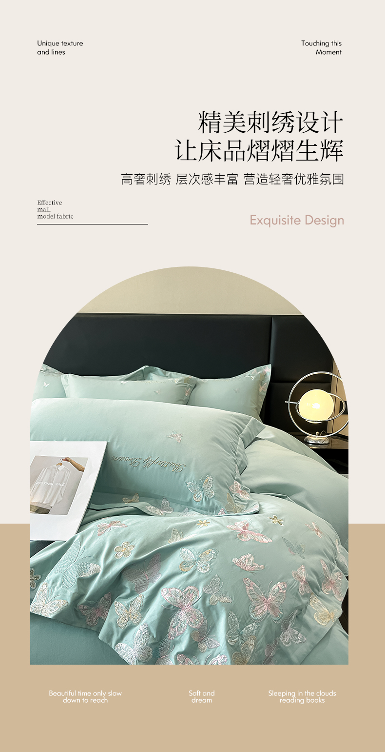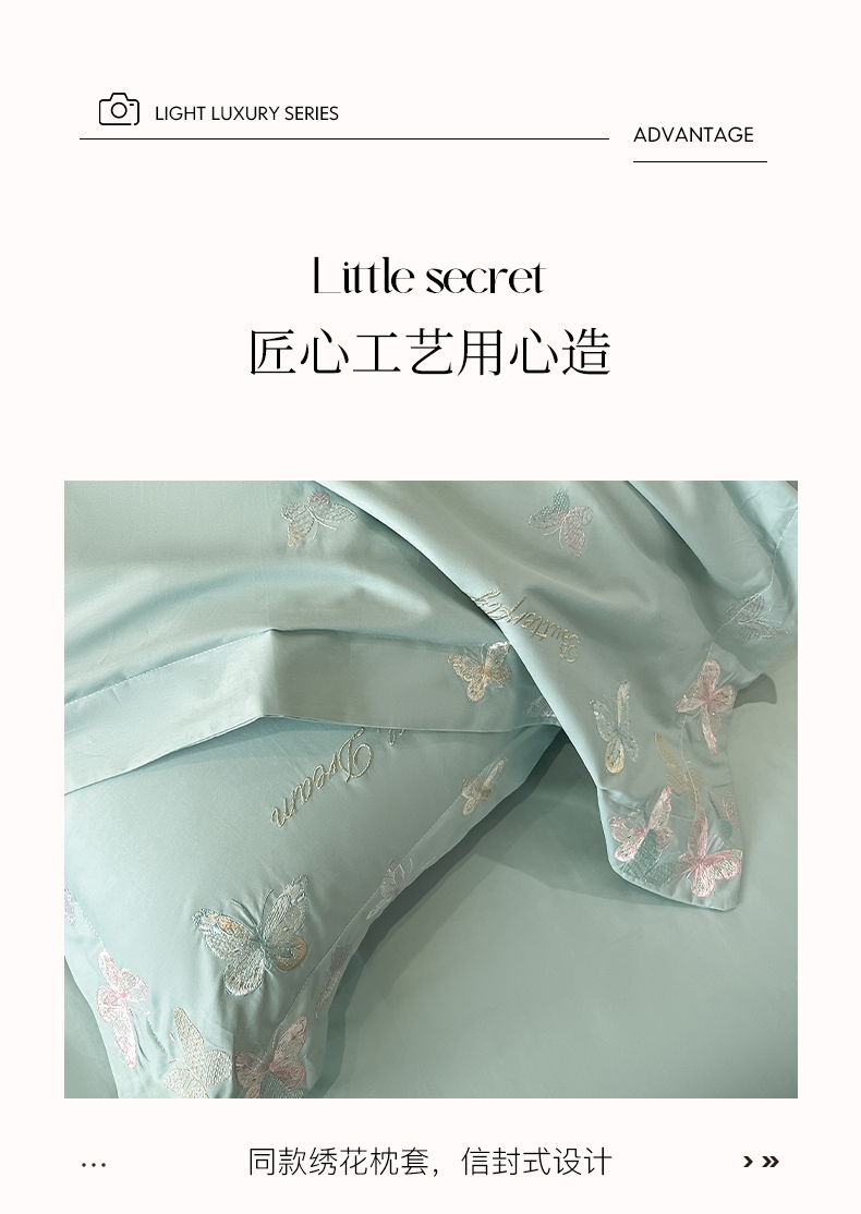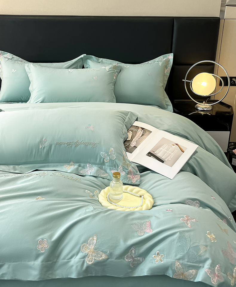 商品名称:理想家家纺 2025新款亲肤舒适纯棉刺绣四件套-蝶影流光 蝶影流光-绿