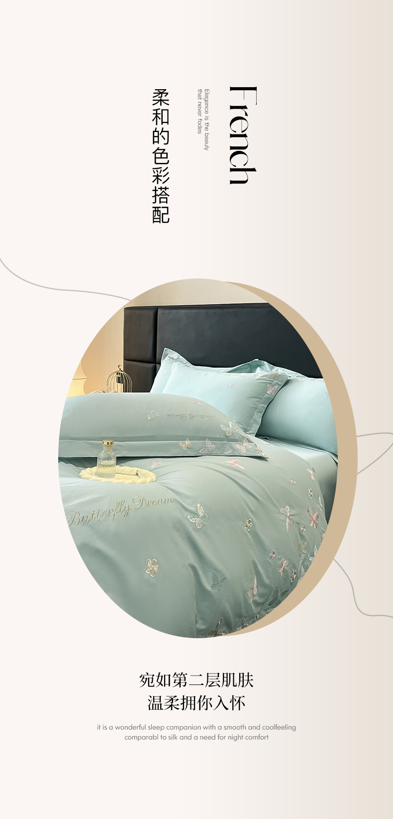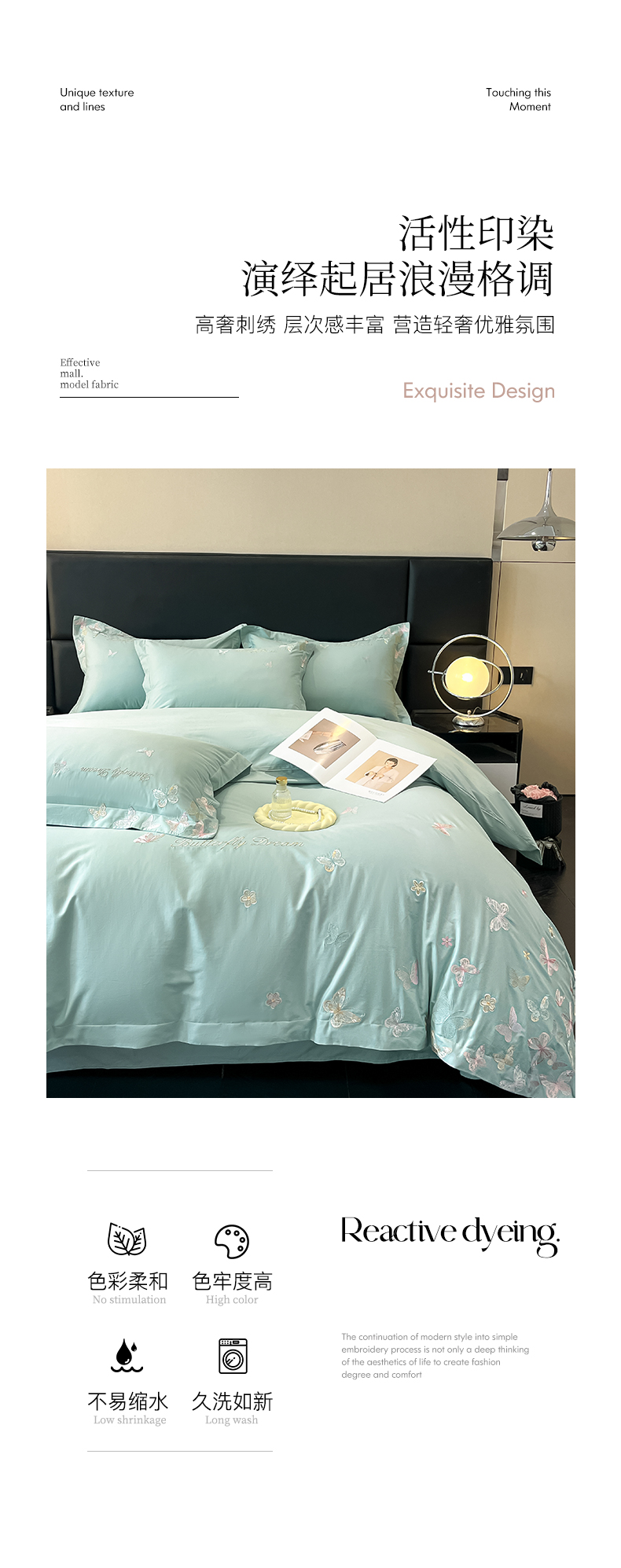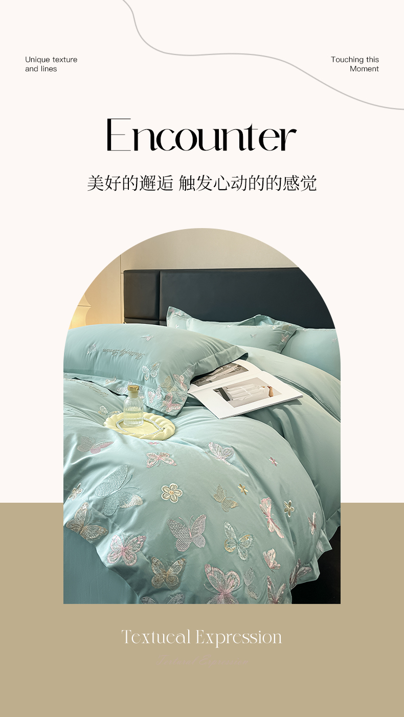 商品名称:理想家家纺 2025新款亲肤舒适纯棉刺绣四件套-蝶影流光 蝶影流光-绿