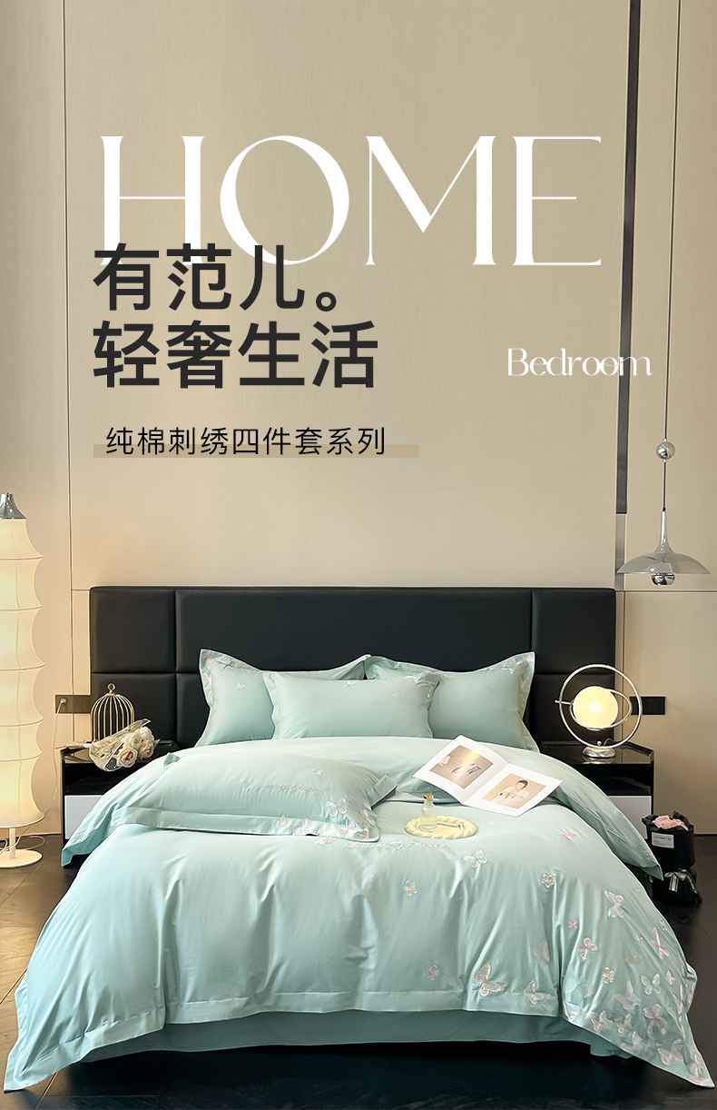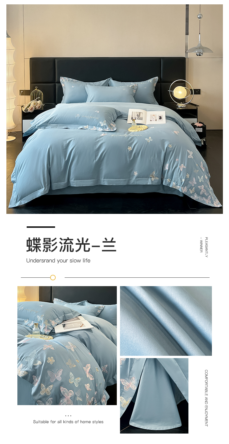 (总)理想家家纺 理想家家纺 2025新款云朵棉水洗真丝刺绣四件套,翩羽白,翩羽粉,翩羽蓝,翩羽绿,翩羽紫