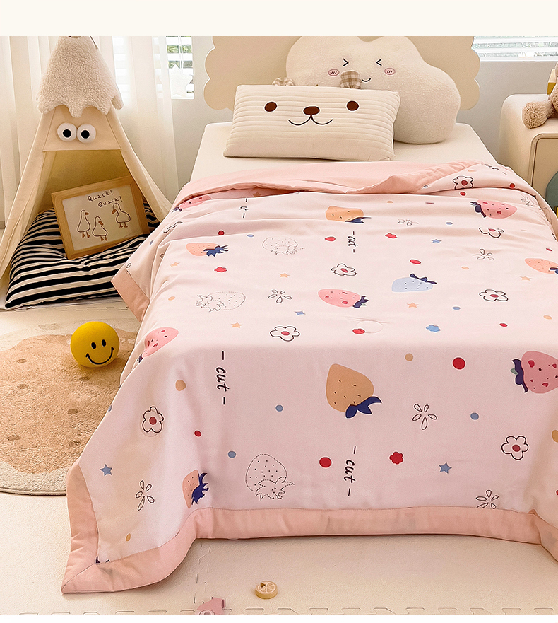 御棉坊 2025年新款A类莫代尔印花儿童夏被 甜酷草莓