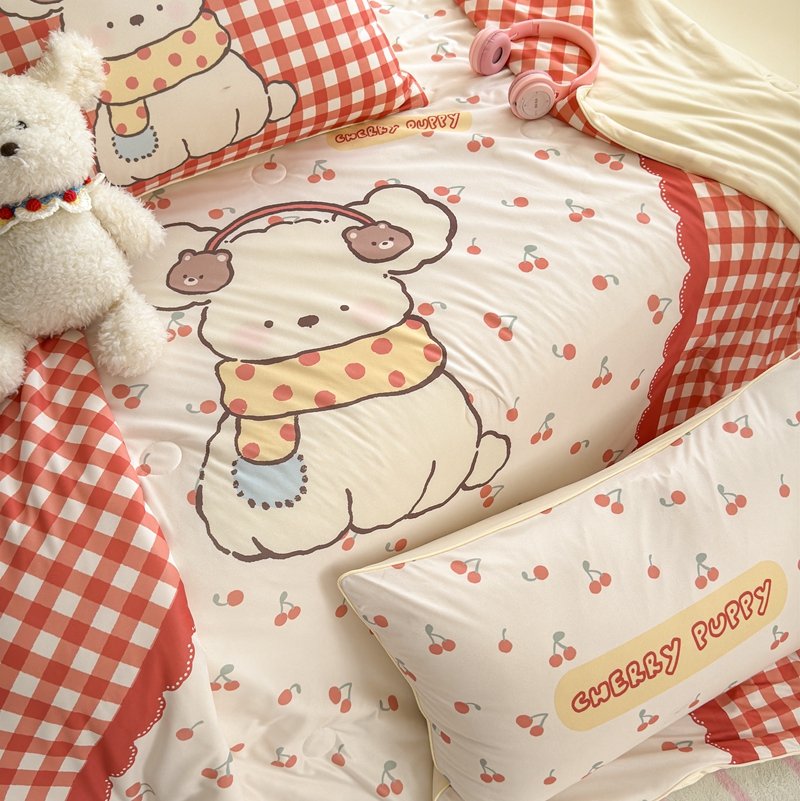 星期八 2025新款针织棉夏被四件套 樱桃小狗