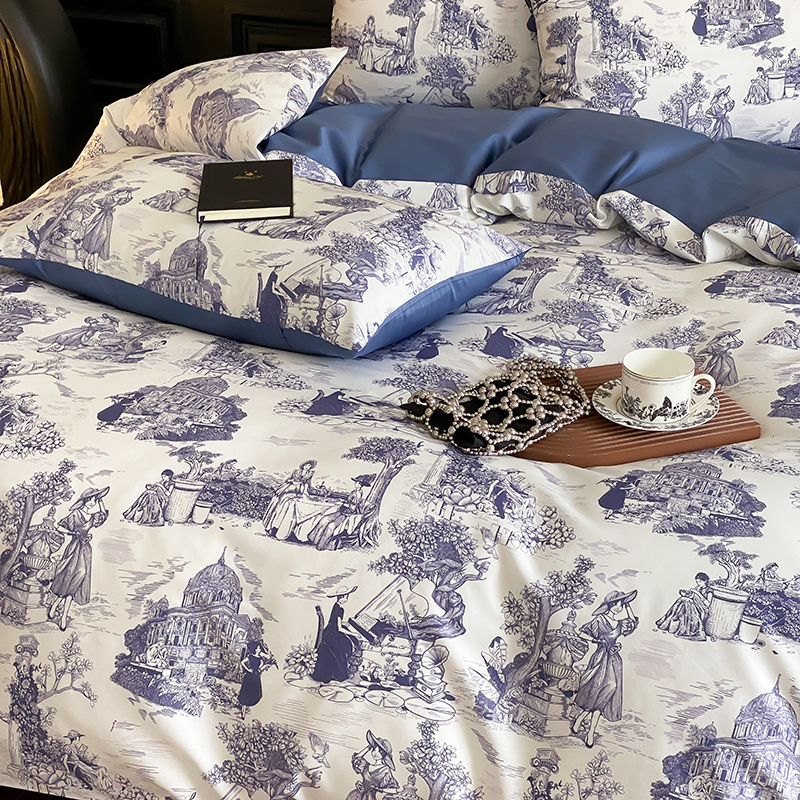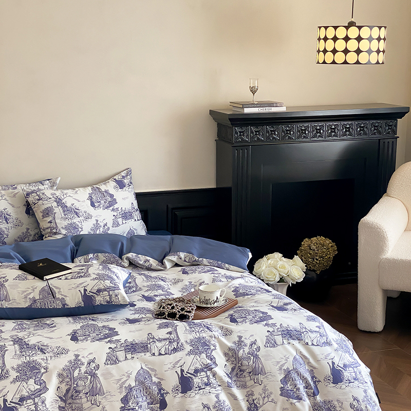 商品名称:赫帛 2025新款赫本猫联名系列四件套-南法庄园 南法庄园-复古蓝