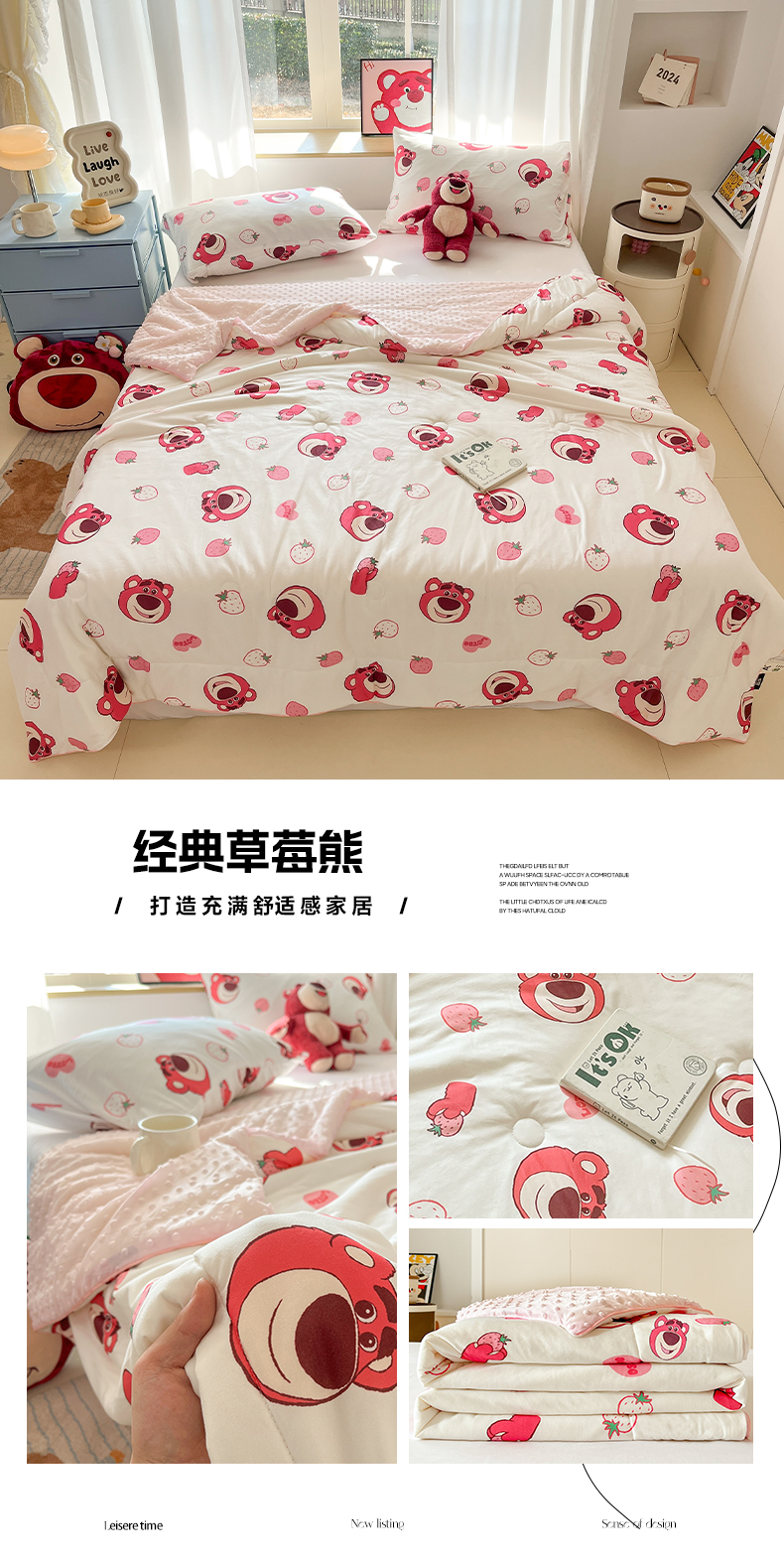 商品名称:木堇家居 2025新款迪士尼凉感豆豆针织棉大豆夏被 经典草莓熊