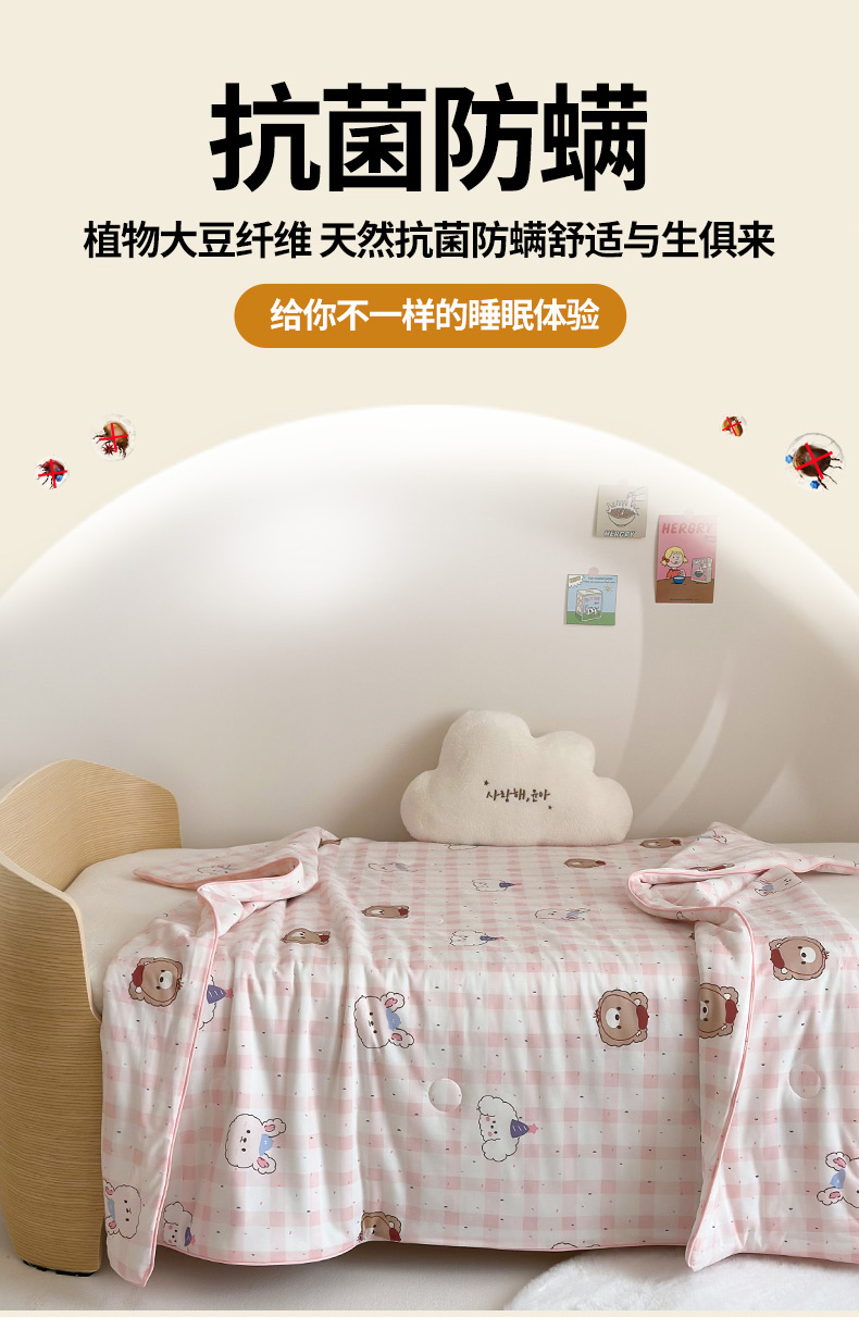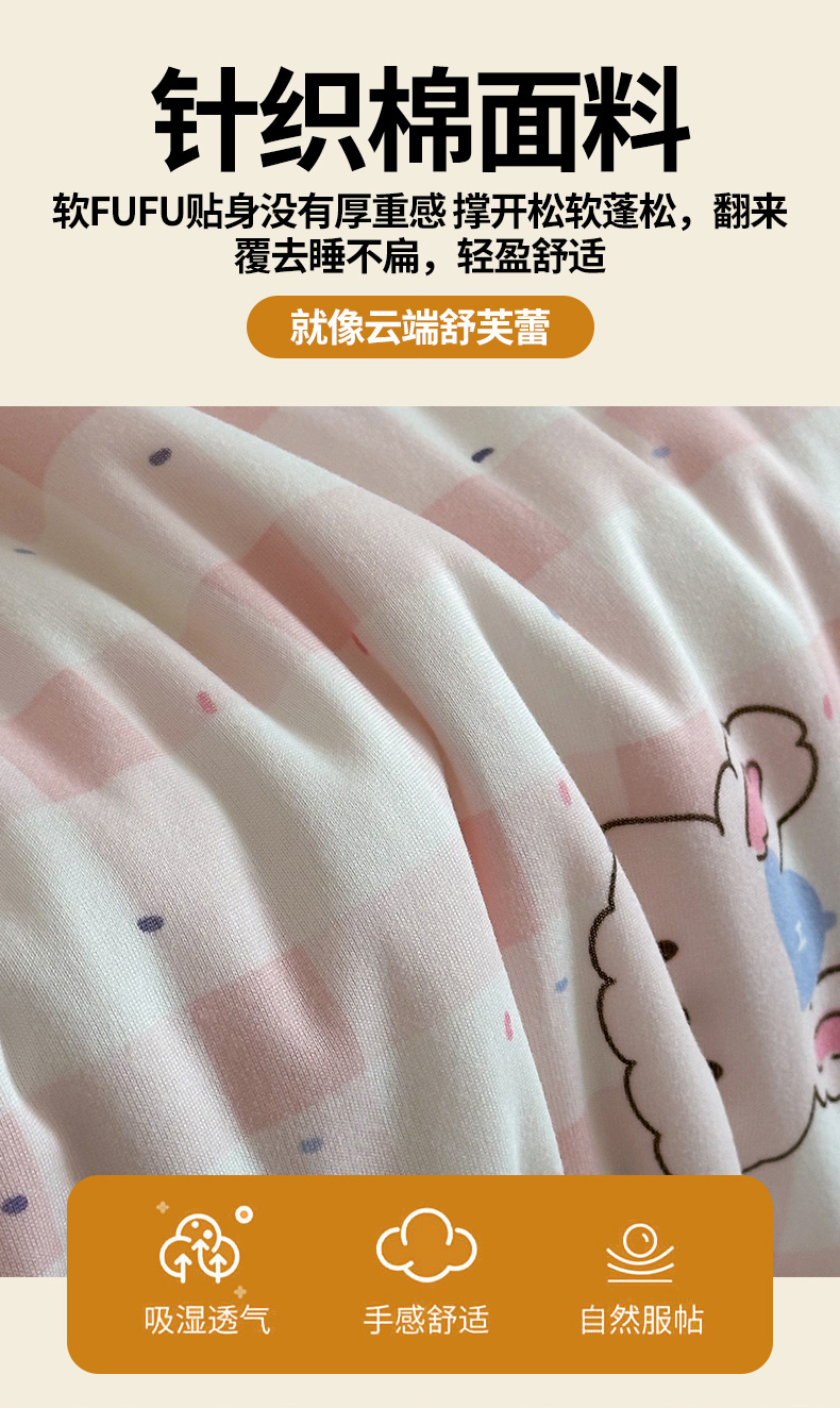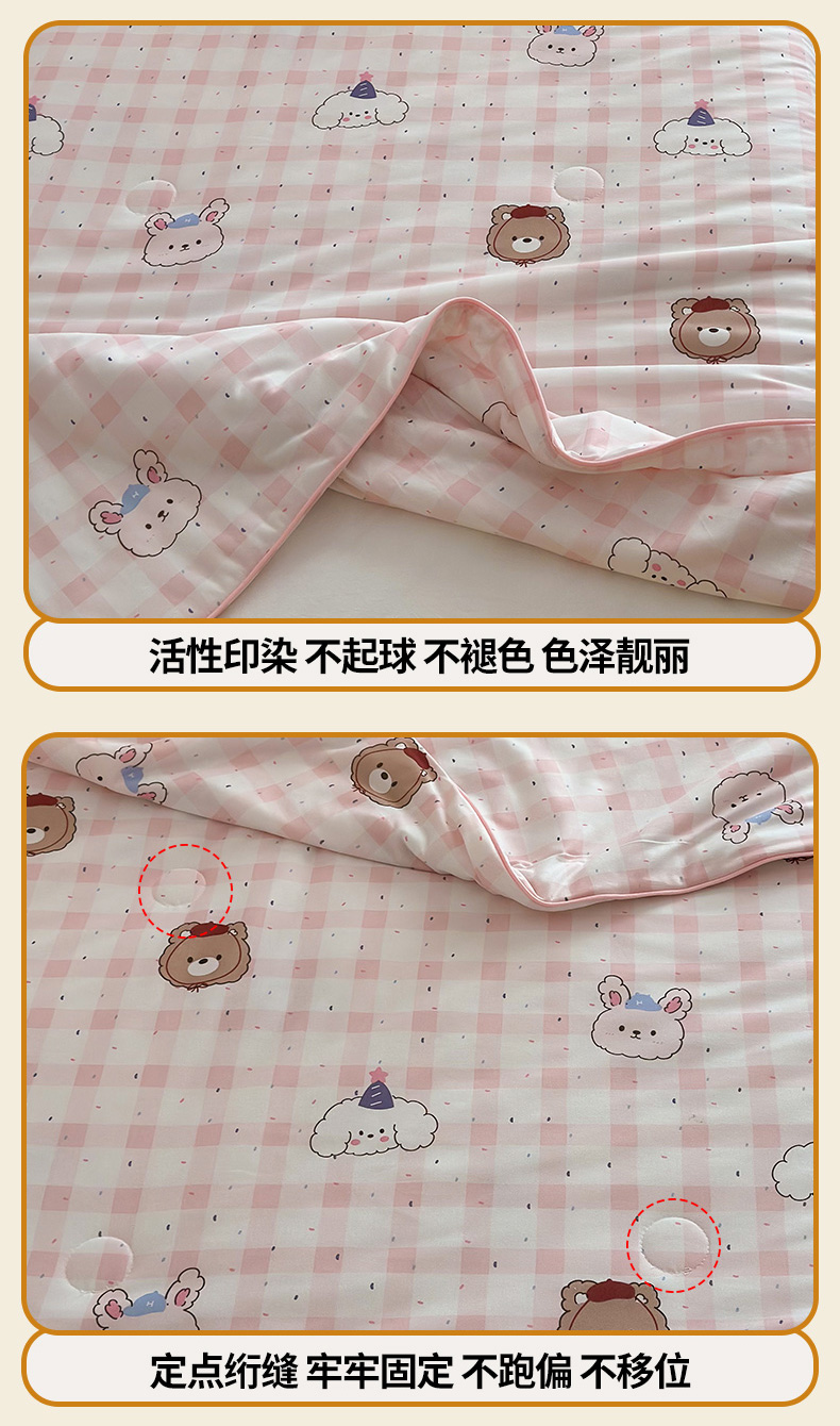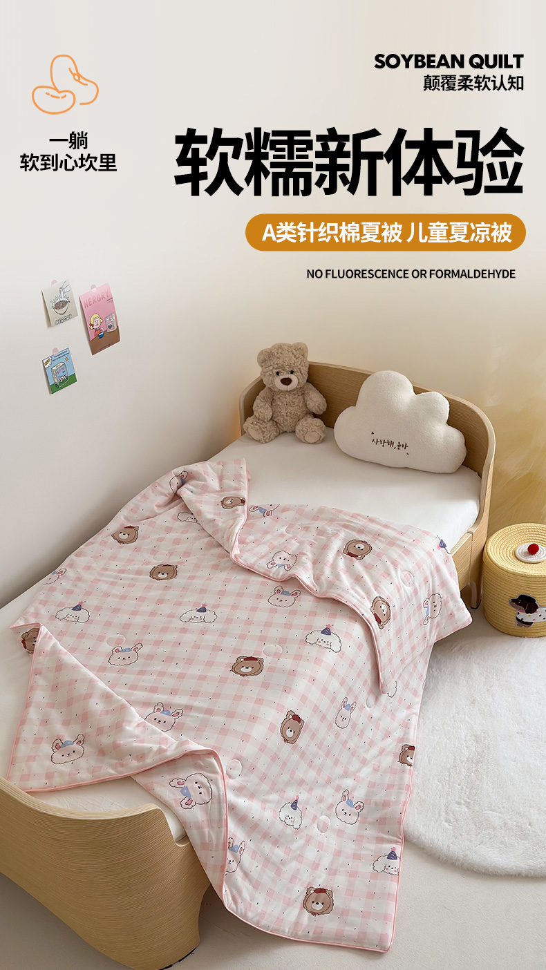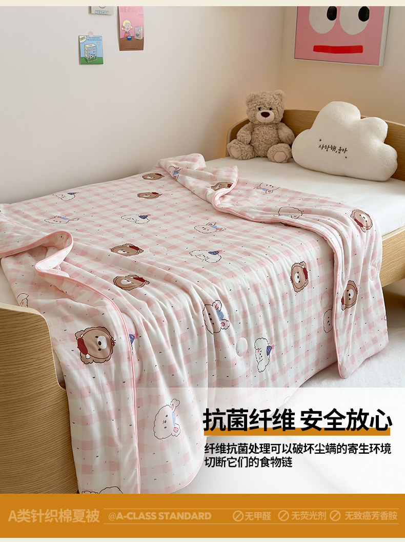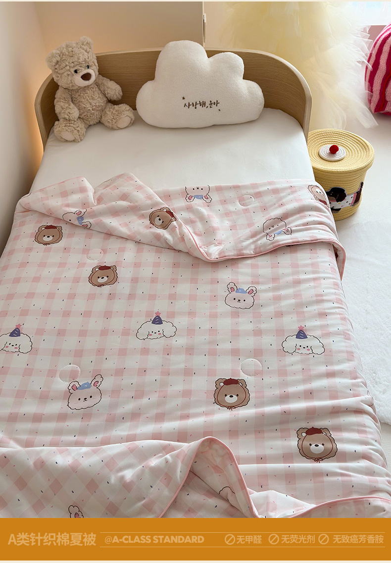 商品名称:嗨生活 2025年新款针织棉夏被 儿童夏被 幼儿园夏凉被 粉格小熊