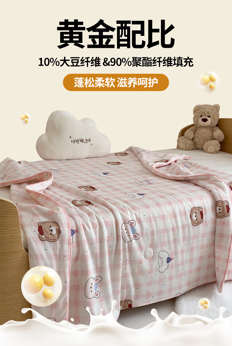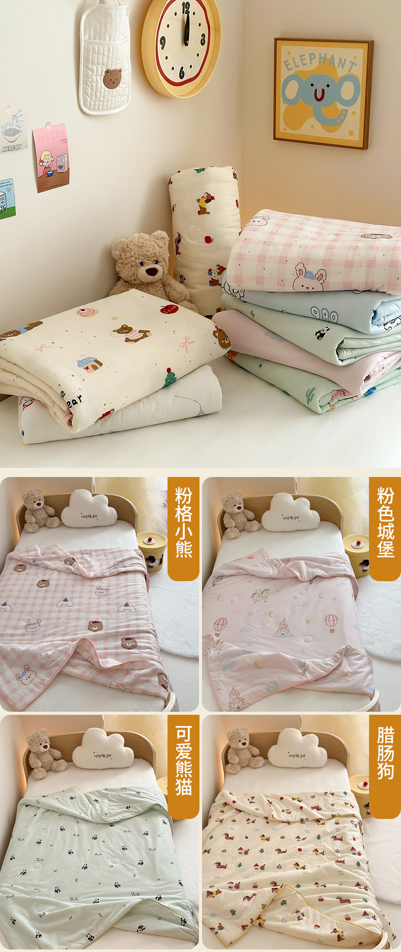 (总)嗨生活 2025新款全棉双层纱豆豆被 儿童被 春秋被 冬被 幼儿园被子,草莓兔兔,花丛小兔,米菲兔,汽车乐园,挖机恐龙,玩具屋,小海豚,熊猫盼盼