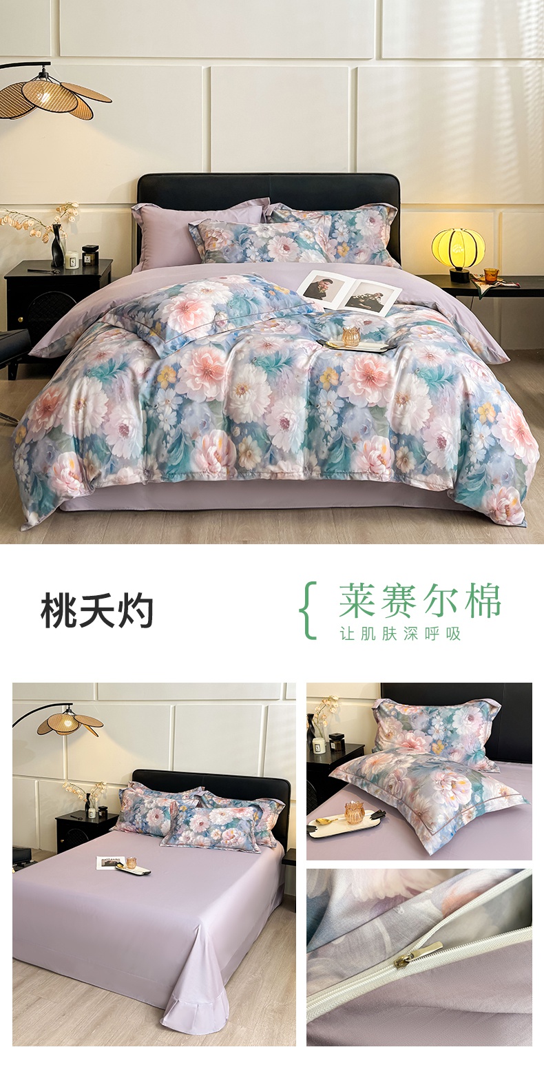 帛美家纺 2025新款40S莱赛尔天丝棉数码印花四件套 花拾
