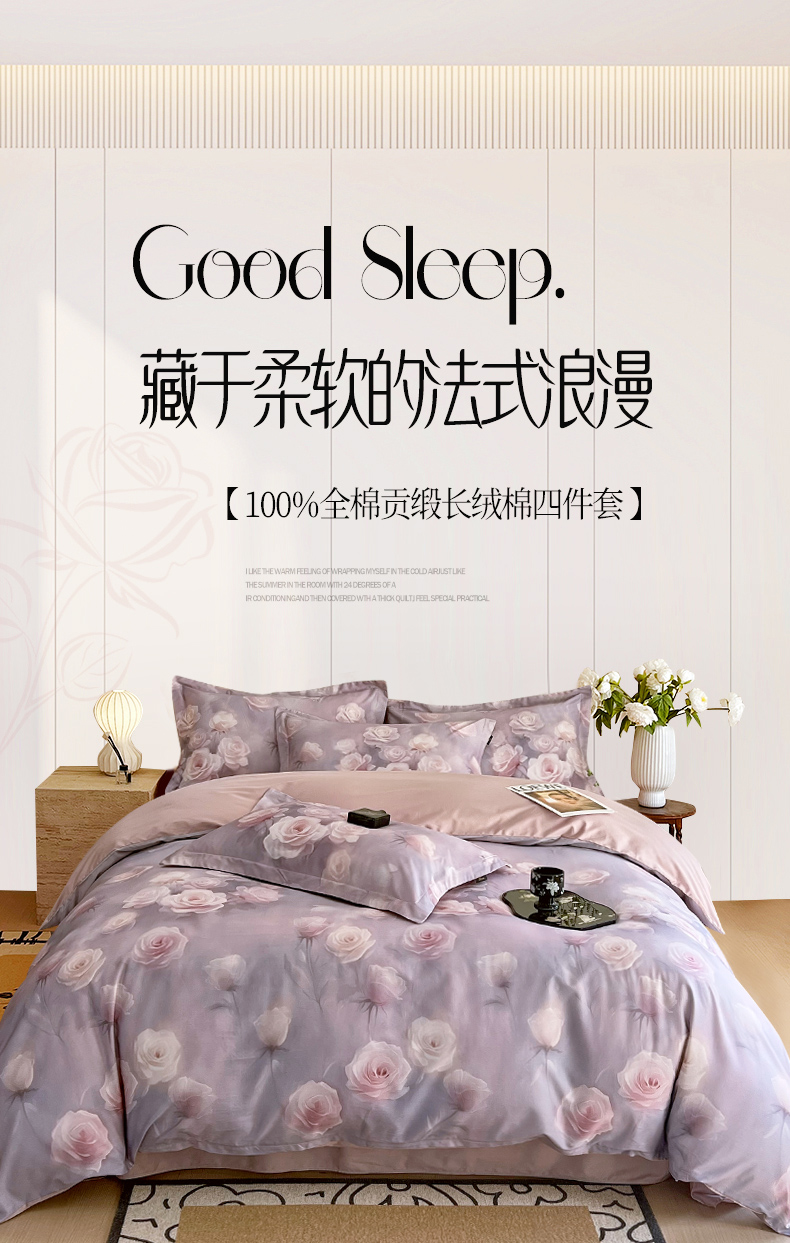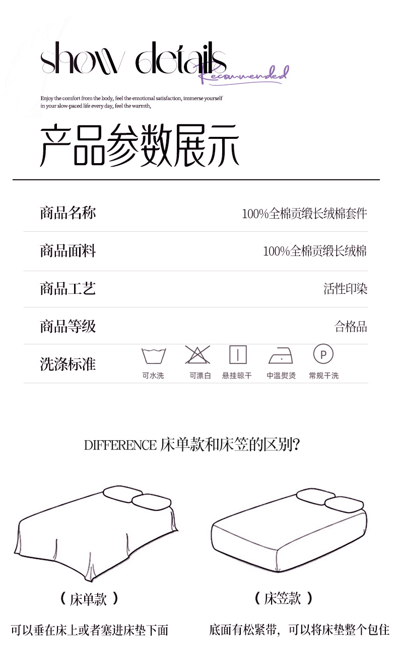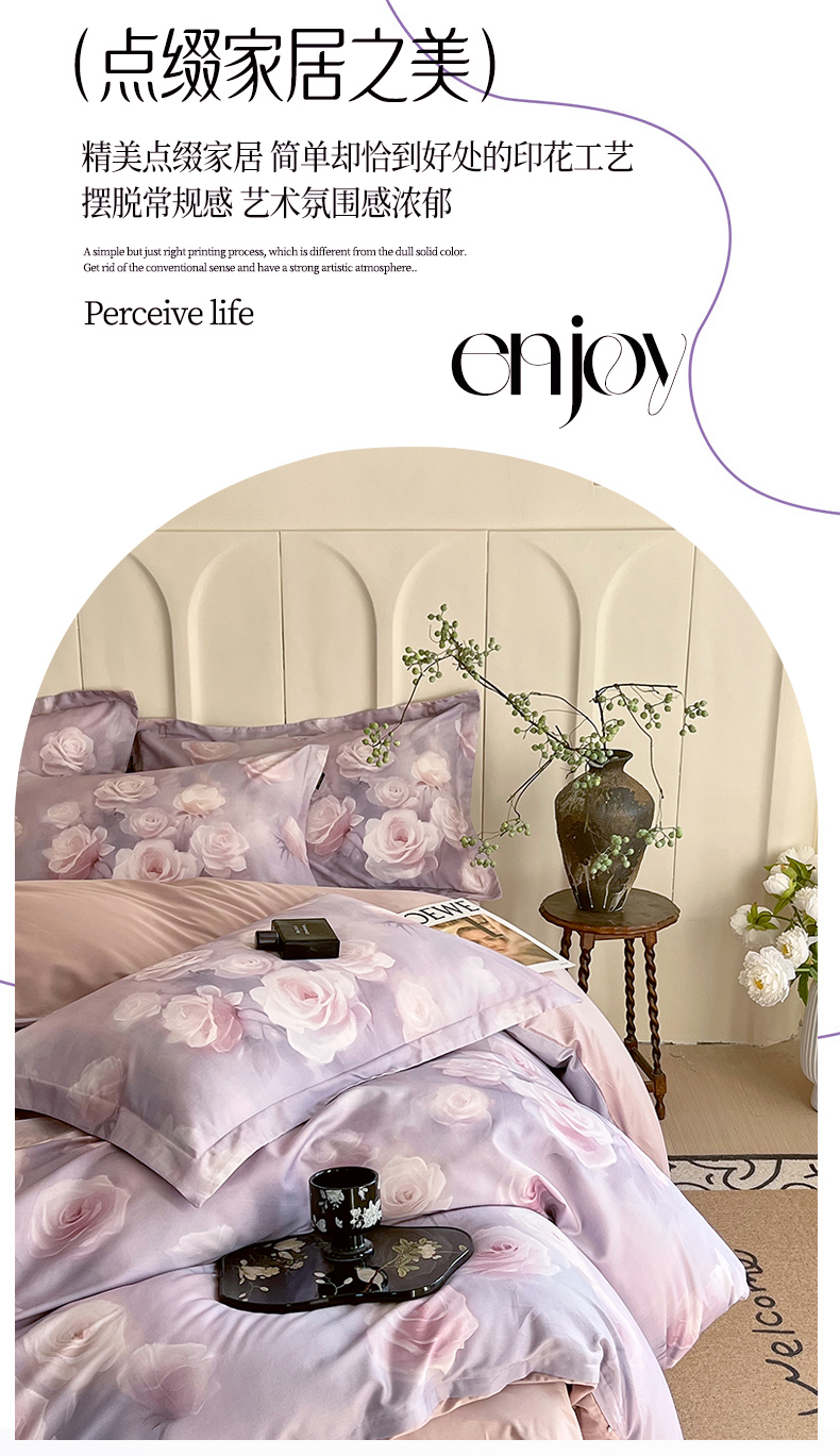 商品名称:梧桐树 2025新款100%全棉60S长绒棉套件 S30韵彩-紫
