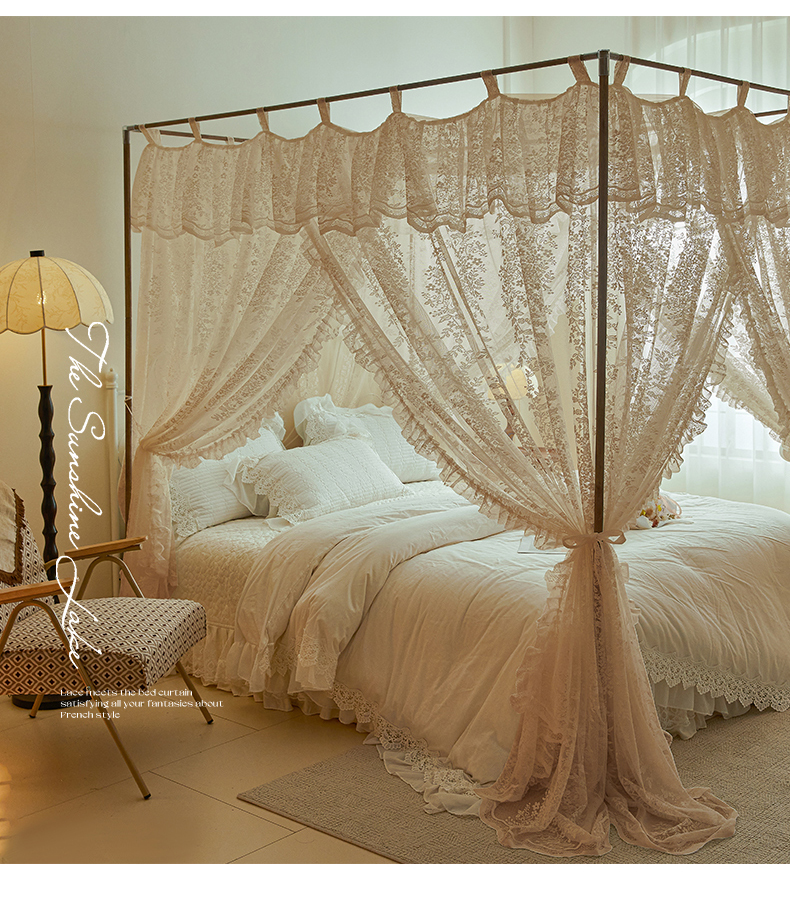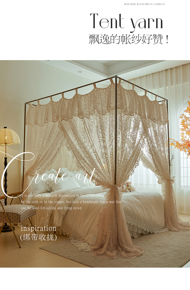 (总)2025新款浪漫落地蕾丝花边蚊帐905提花系带系列,905玫瑰庄园-奶油白,905玫瑰庄园-奶油杏,905玫瑰庄园-奶油玉