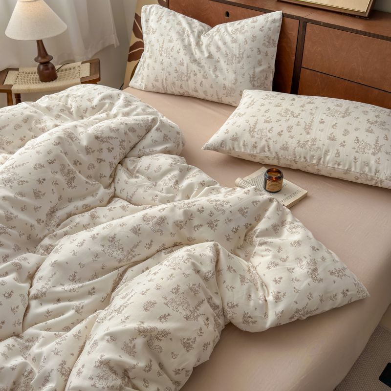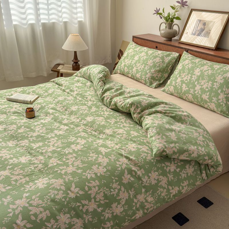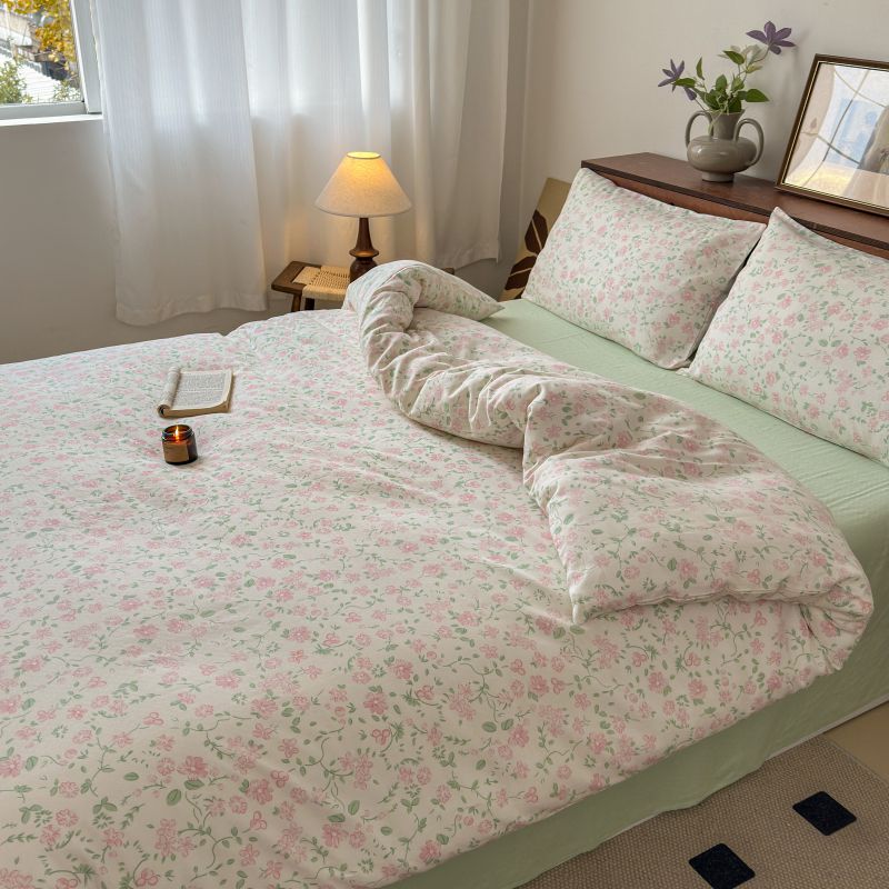 商品名称:典曼家纺 2025新款双层纱小清新印花四件套-床拍 浮绘花影