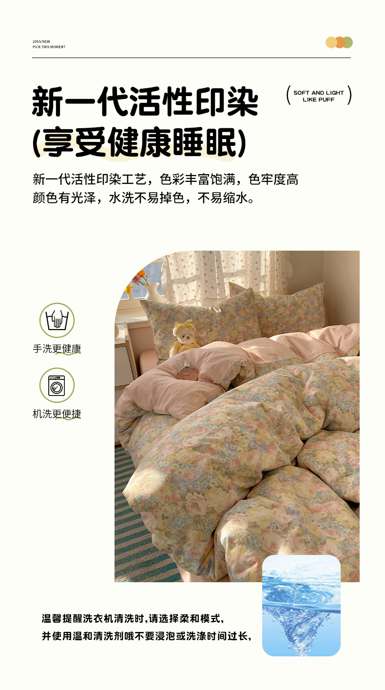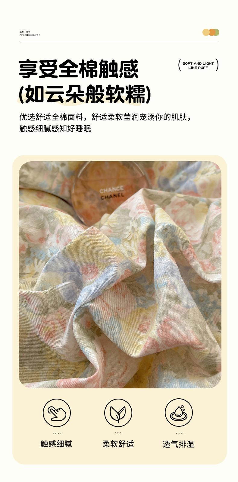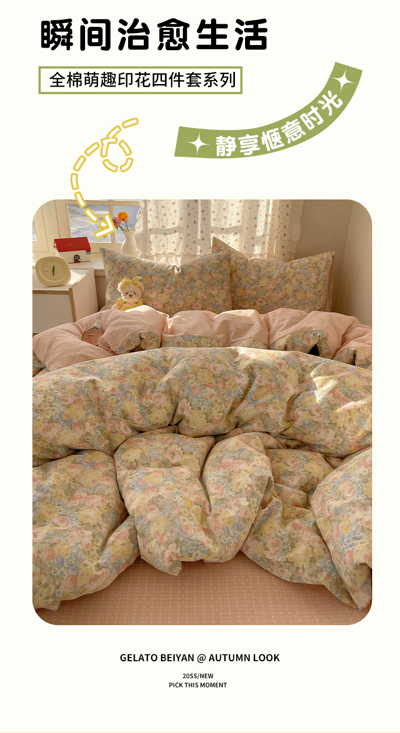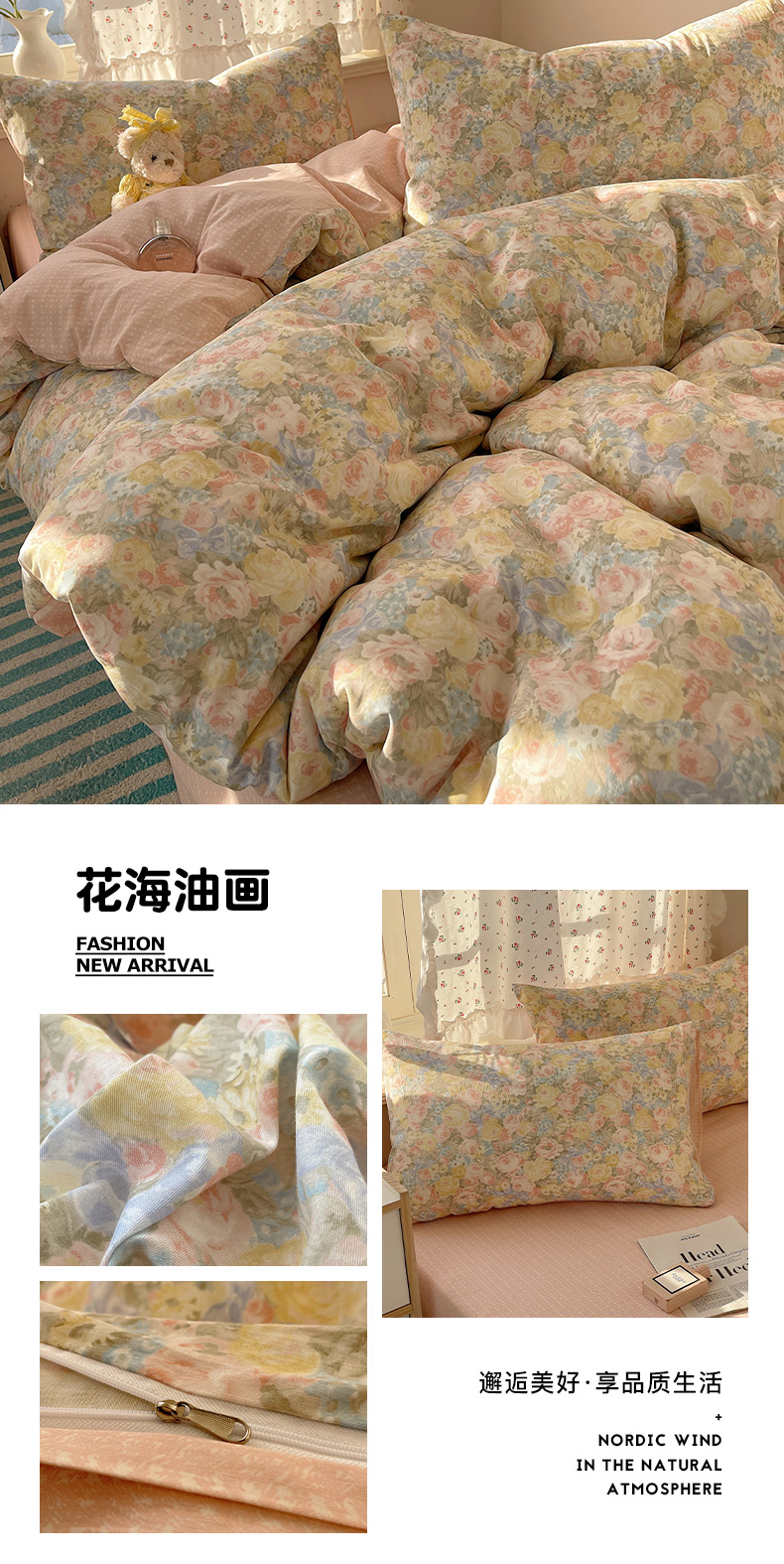 商品名称:瑞莱 2025全新纯棉印花萌趣系列四件套(第二批) 花海油画