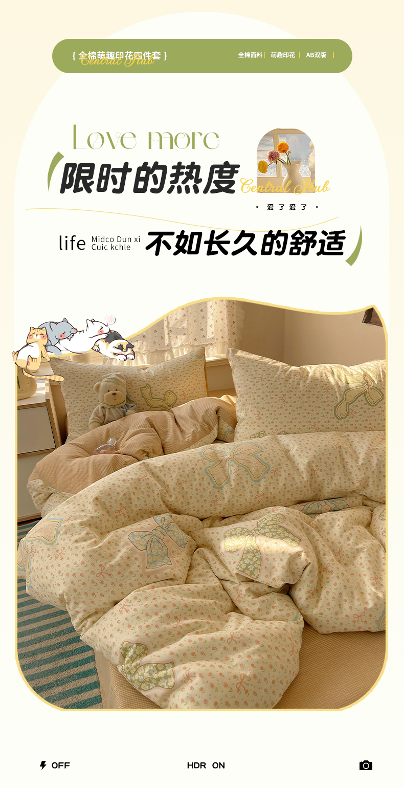 (总)瑞莱 2026春季新款全棉纯棉印花小清新萌趣系列四件套,小懒猫,KT猫,可爱猫咪,蓝花兔,路灯影院,莓果小萌,帕丁顿兔兔,企鹅家族,趣味涂鸦,甜梦日记,甜梦小精灵,甜心KT,小镇漫游记