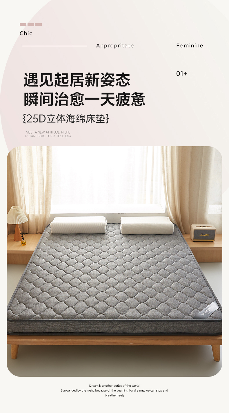 当前位置: 91家纺网 > 商品网购 > 床垫/床褥 > 普通床垫 > 艺博床垫 2025新款25d立体海绵床垫 格子灰