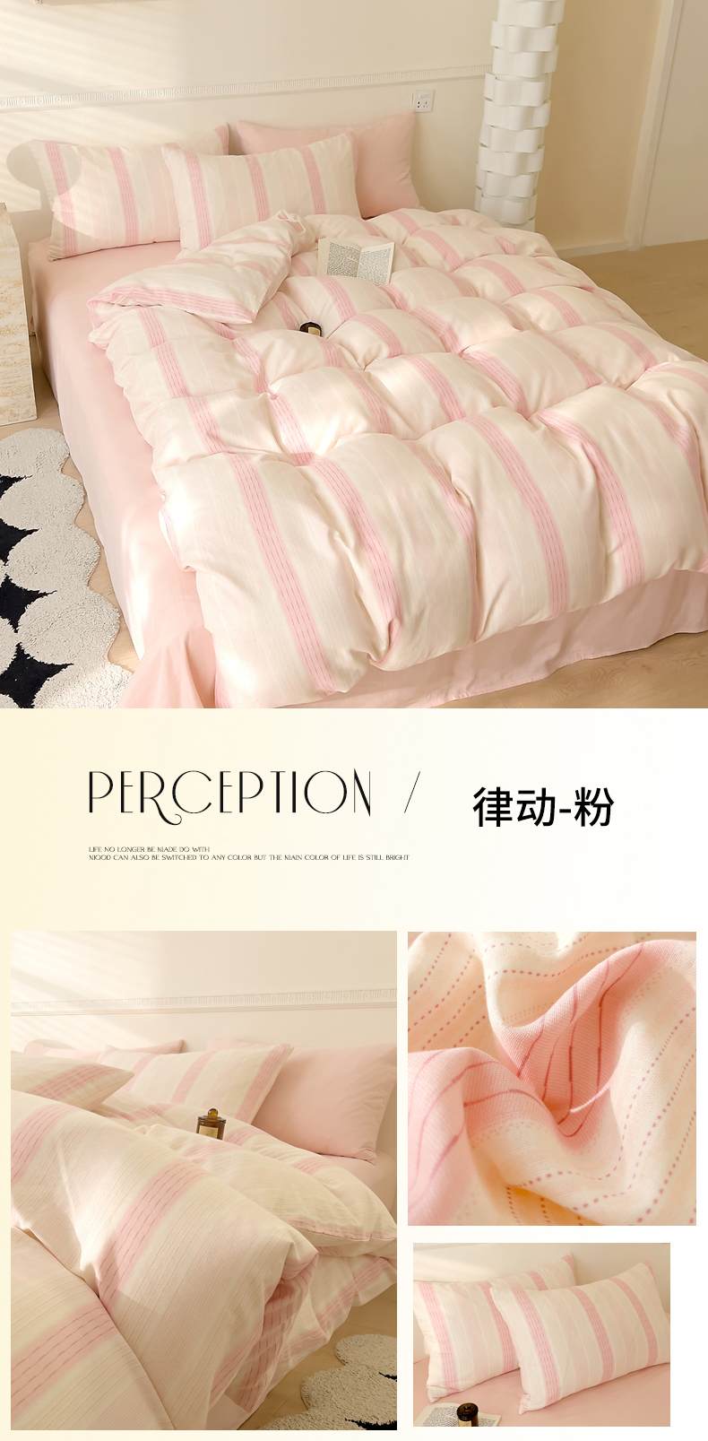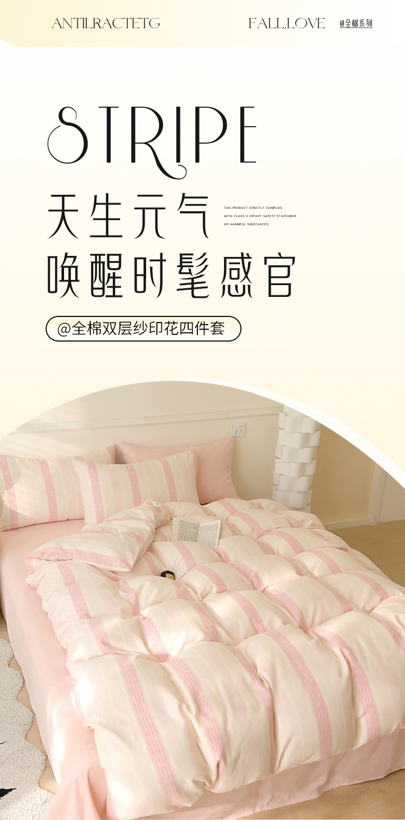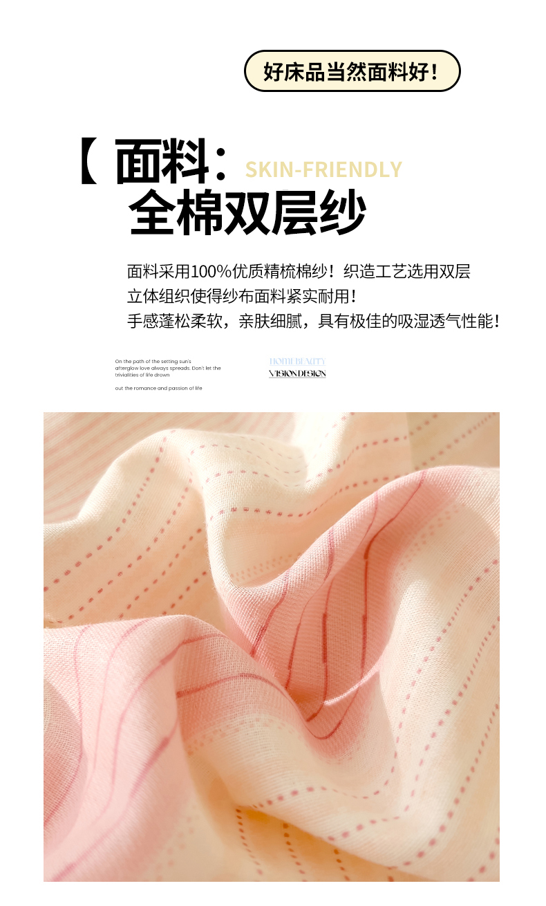 当前位置: 91家纺网 > 商品网购 > 床品套件 > 四件套 > 全棉普通四件套 > DoDo 兜兜 2025新款全棉双层纱印花四件套(可定做尺寸) 律动-粉