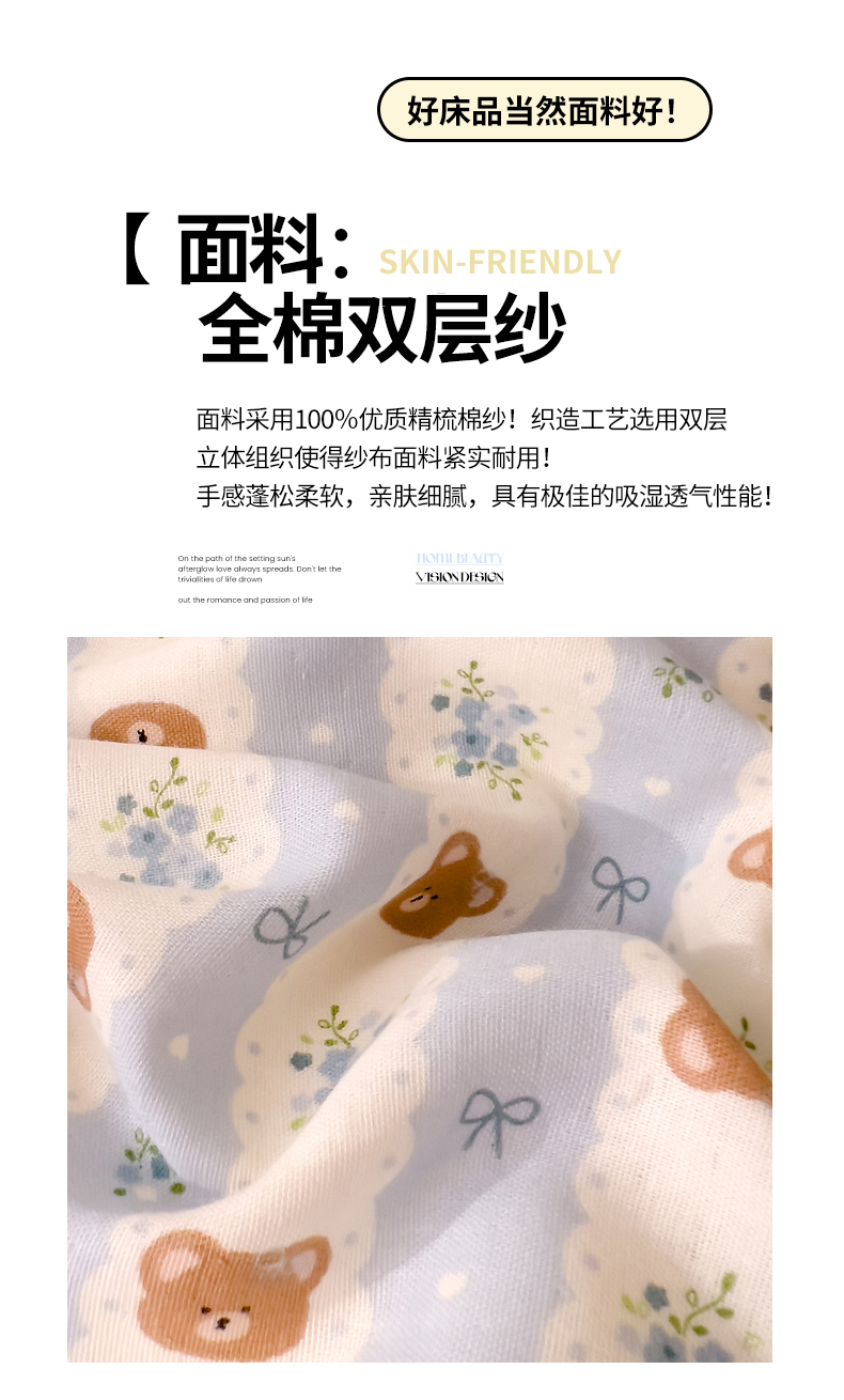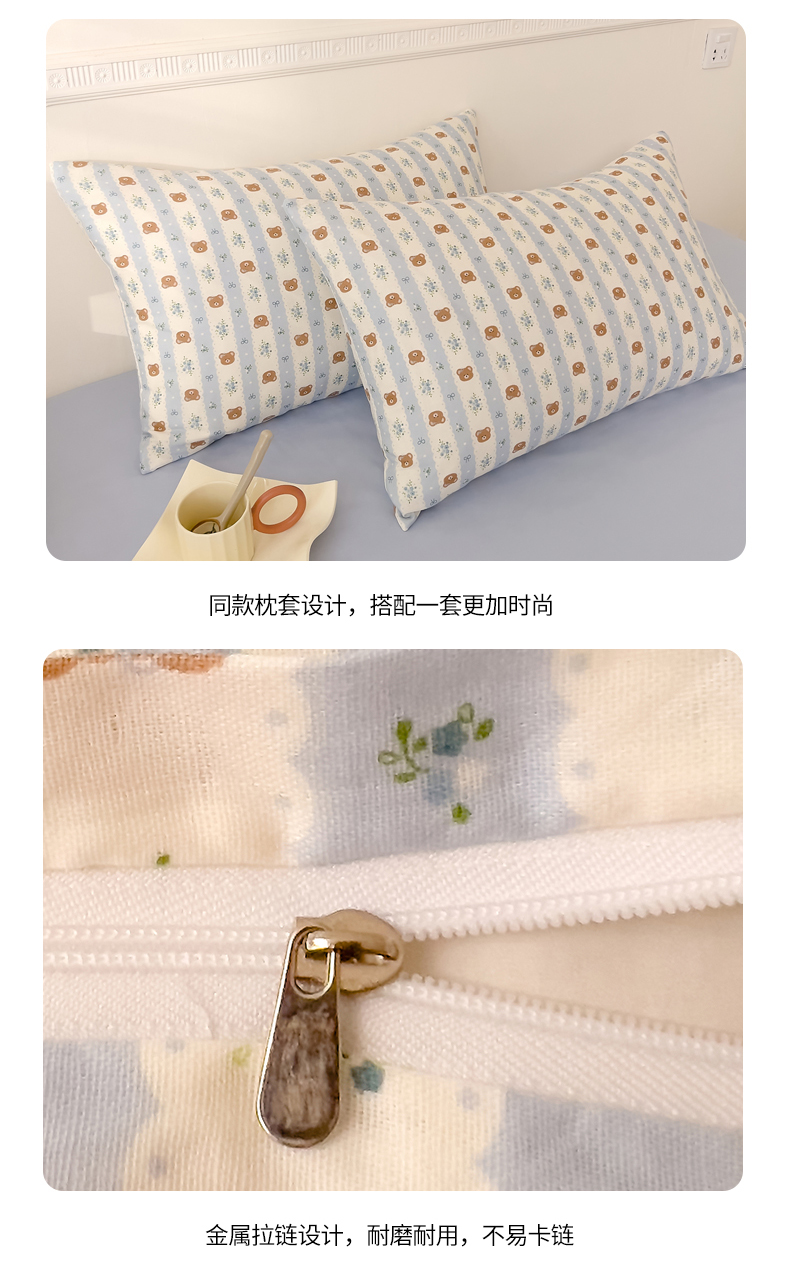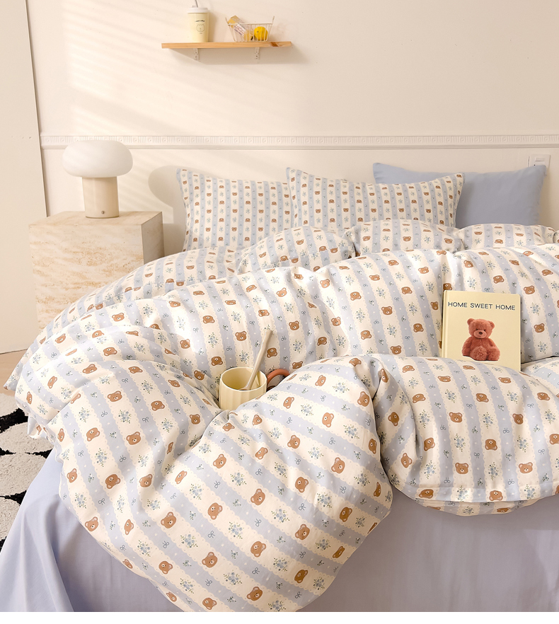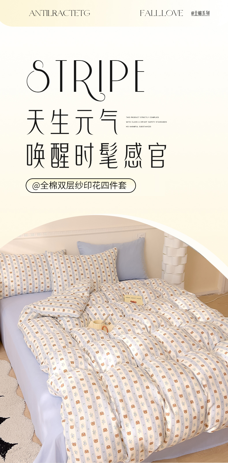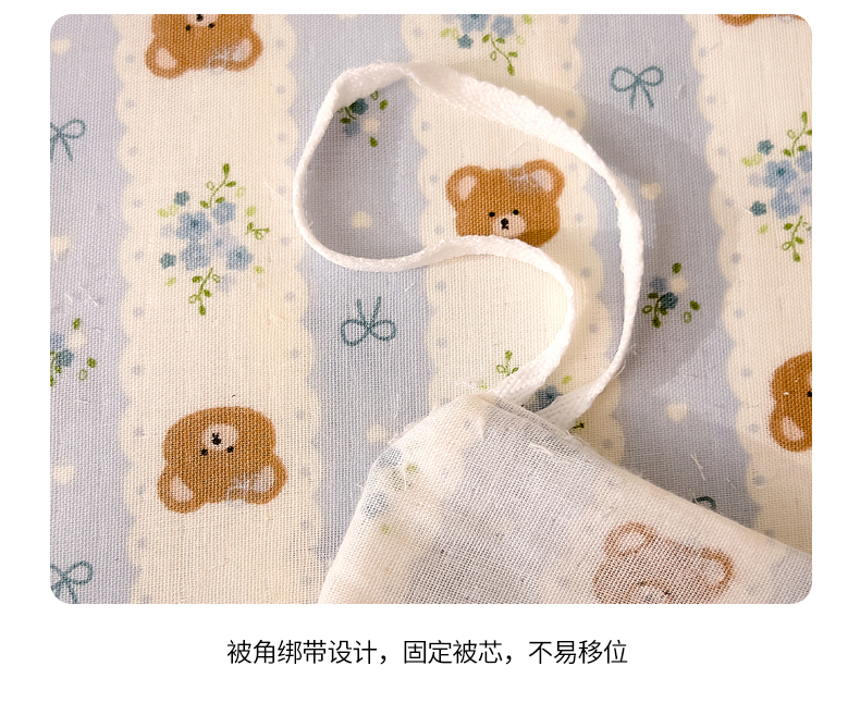 当前位置: 91家纺网 > 商品网购 > 床品套件 > 四件套 > 全棉普通四件套 > DoDo 兜兜 2025新款全棉双层纱印花四件套(可定做尺寸) 条纹小熊-蓝