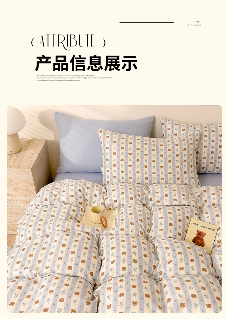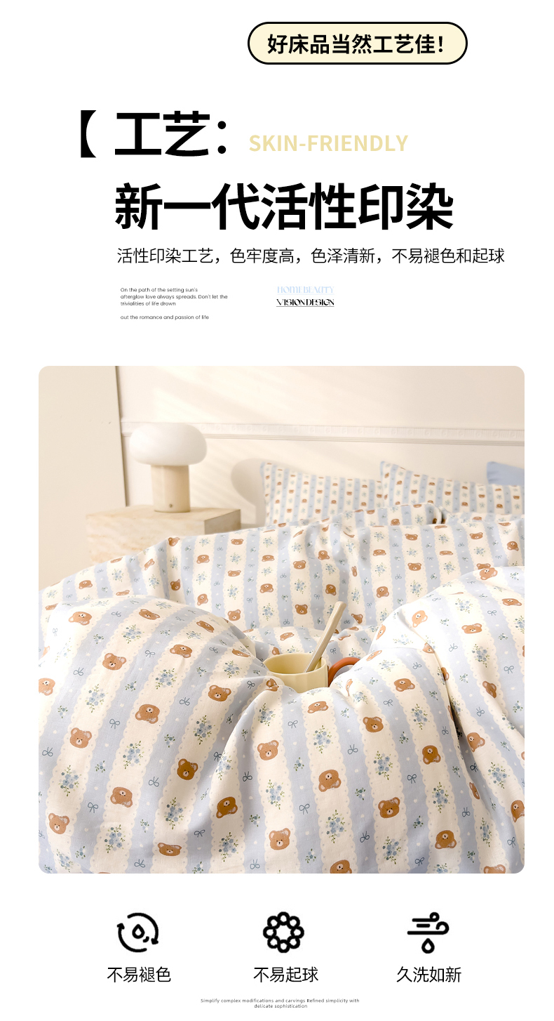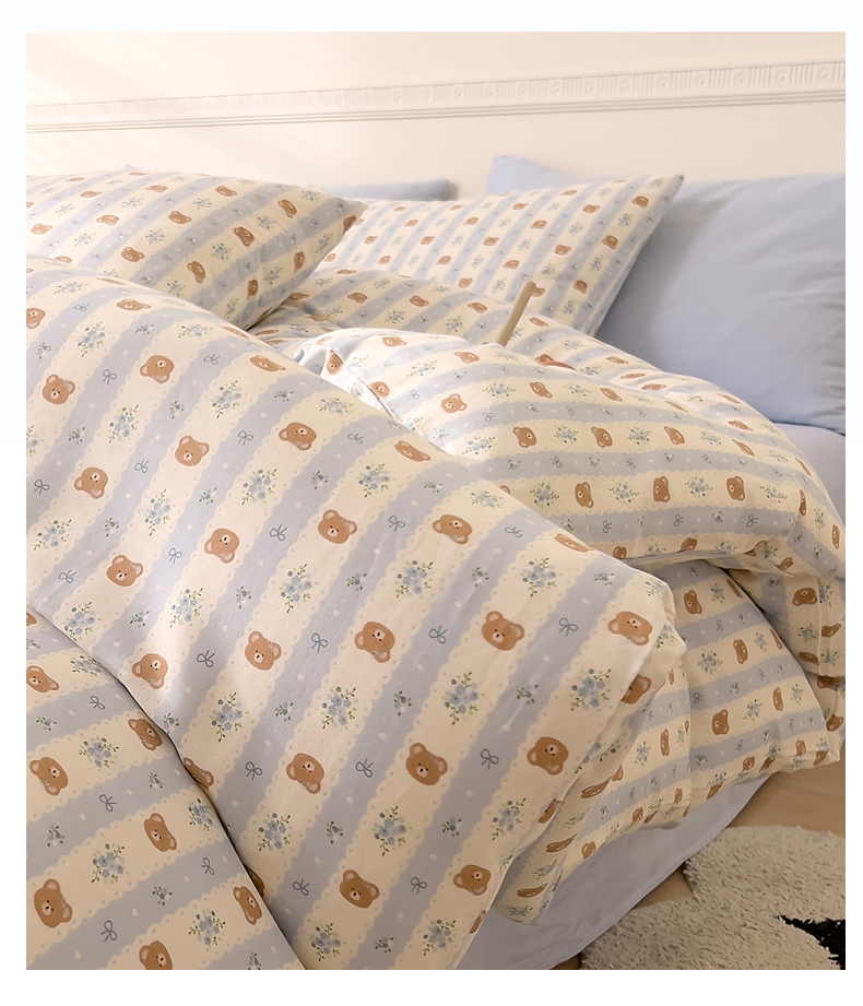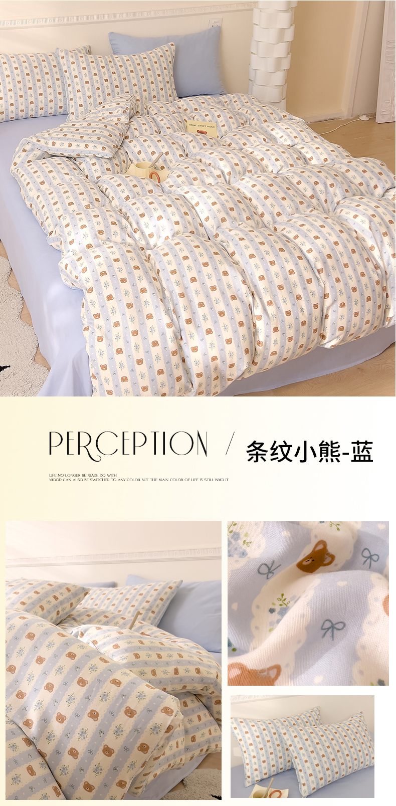 当前位置: 91家纺网 > 商品网购 > 床品套件 > 四件套 > 全棉普通四件套 > DoDo 兜兜 2025新款全棉双层纱印花四件套(可定做尺寸) 条纹小熊-蓝