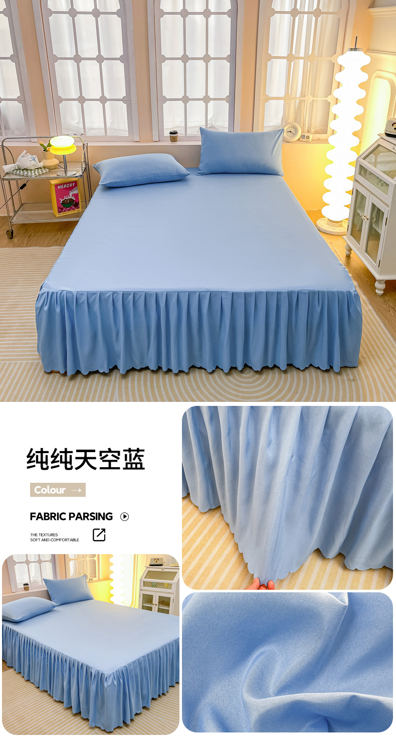 • 91家纺网 家纺一手货源 找家纺 莎臣豹 2025水洗磨毛纯色单品床裙可配二三件套 纯纯天空蓝