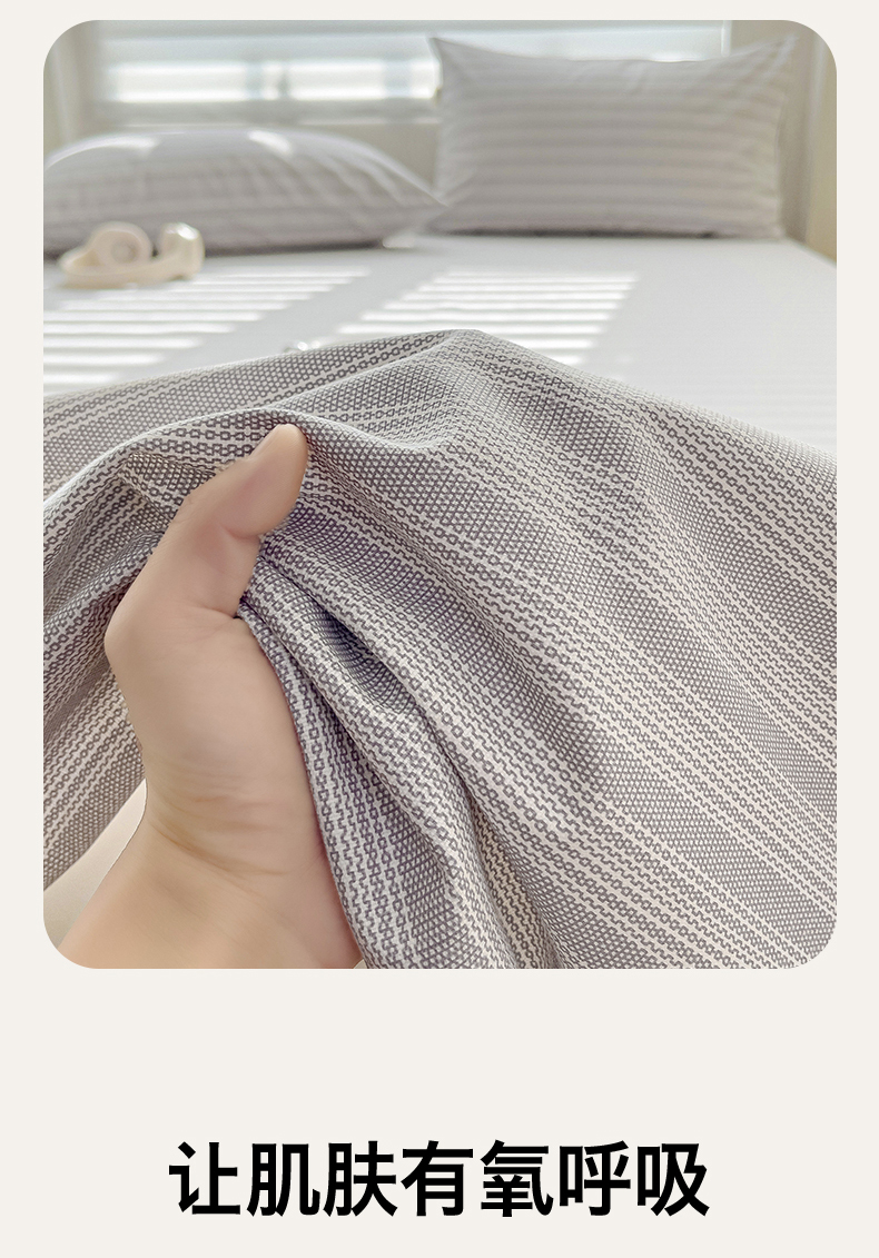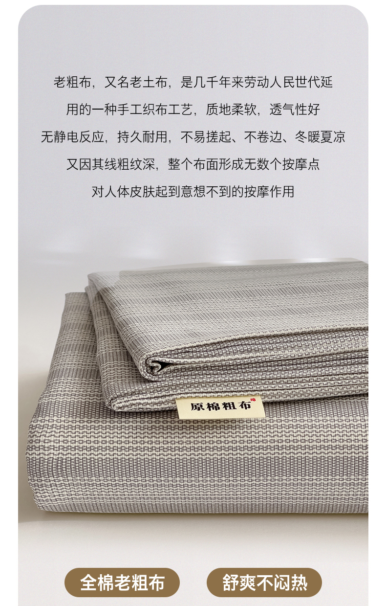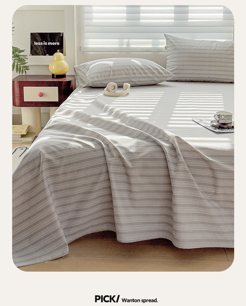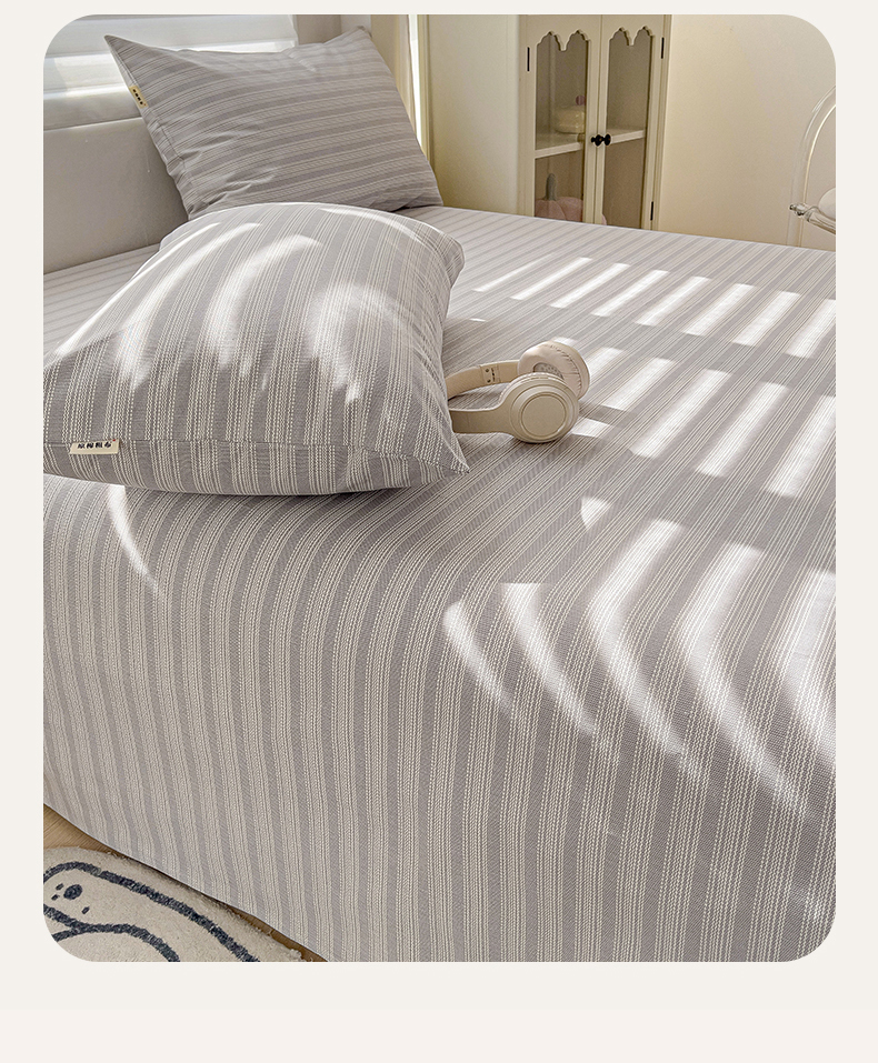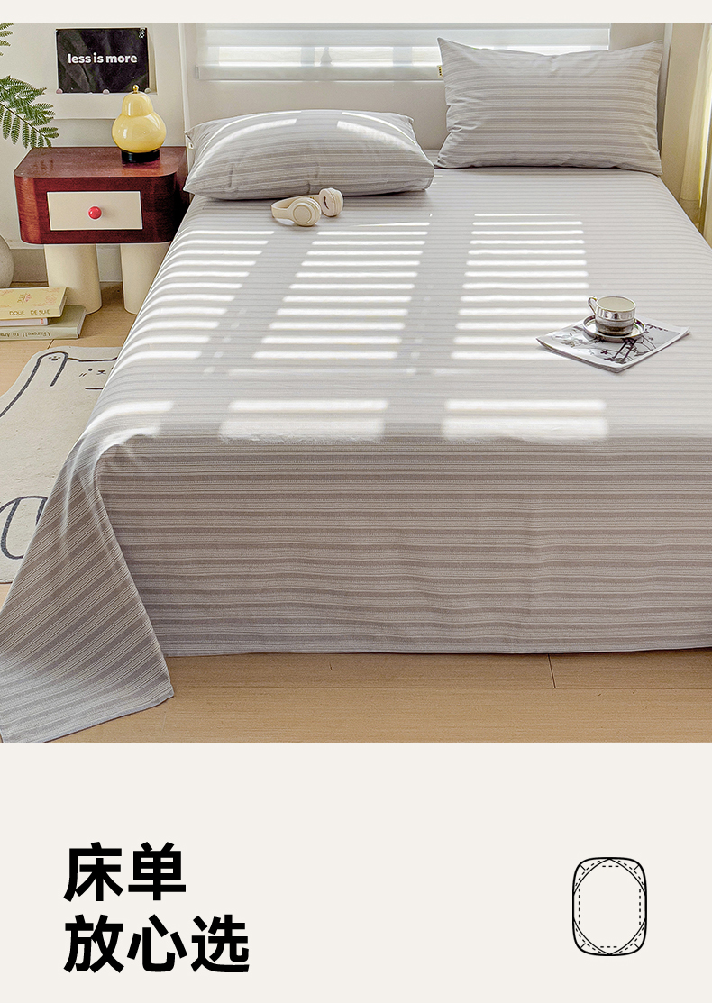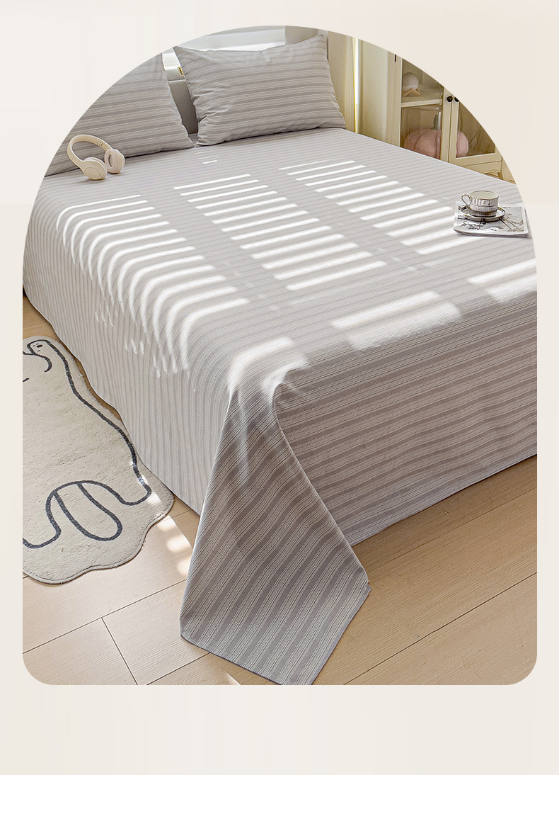 • 91家纺网 家纺一手货源 找家纺 名兮家居2025新款卡通简约时尚全棉老粗布床单 条纹灰