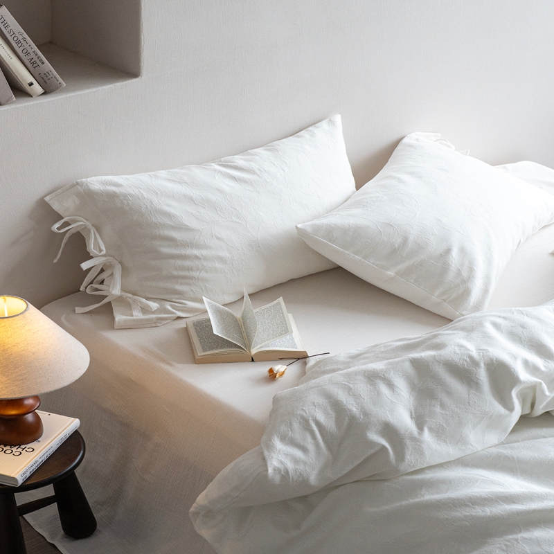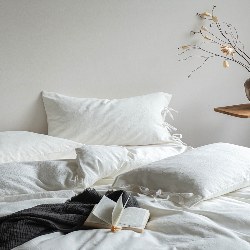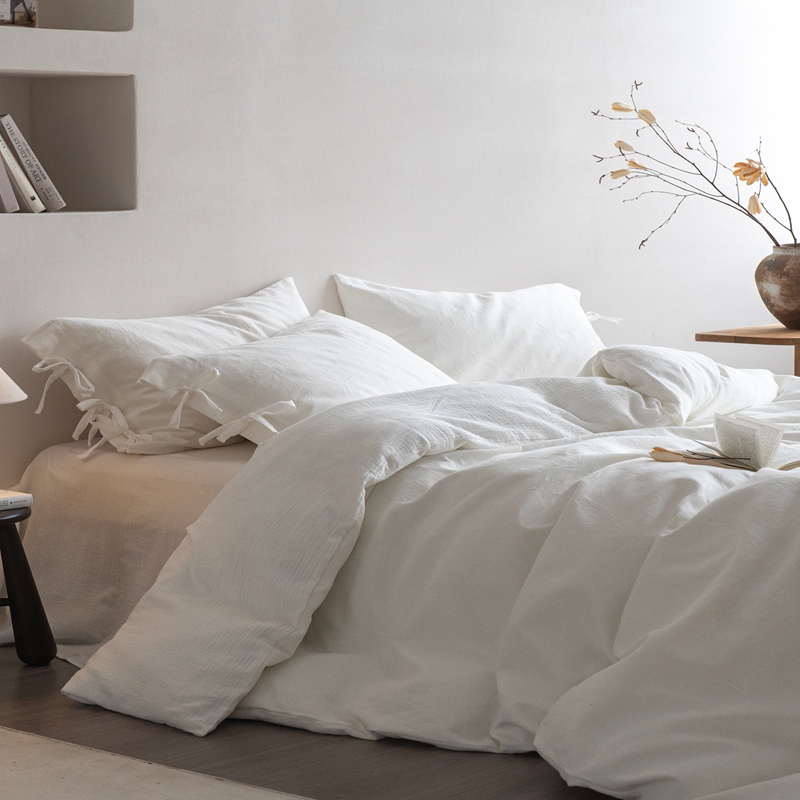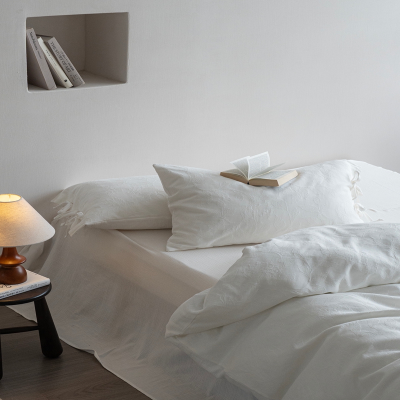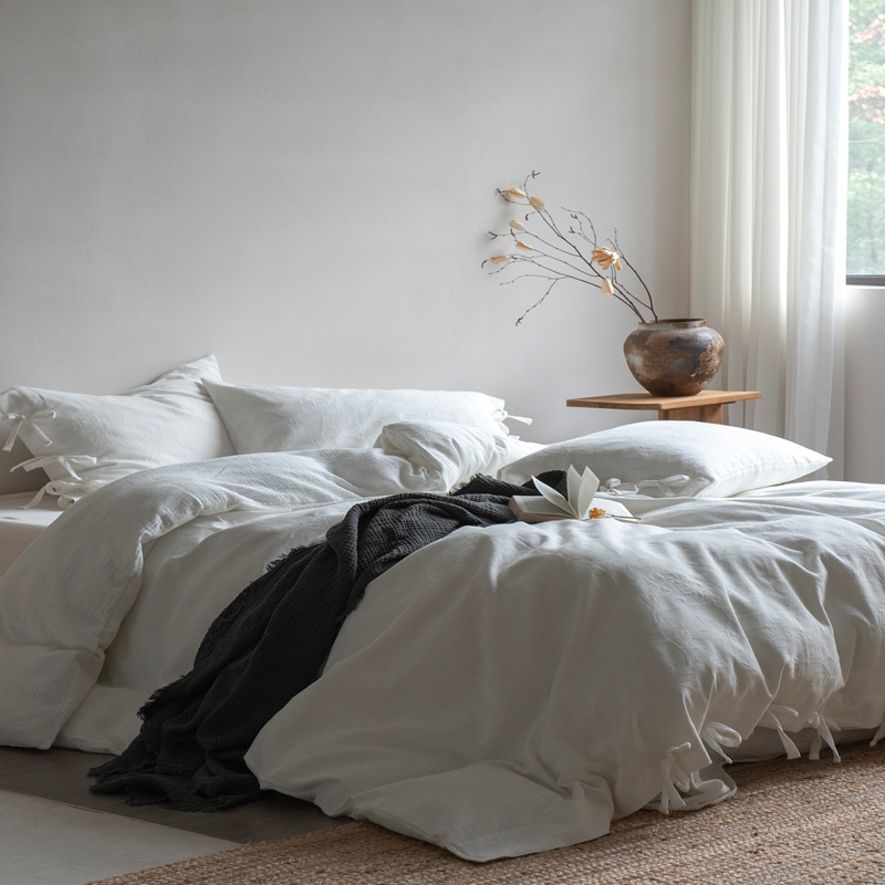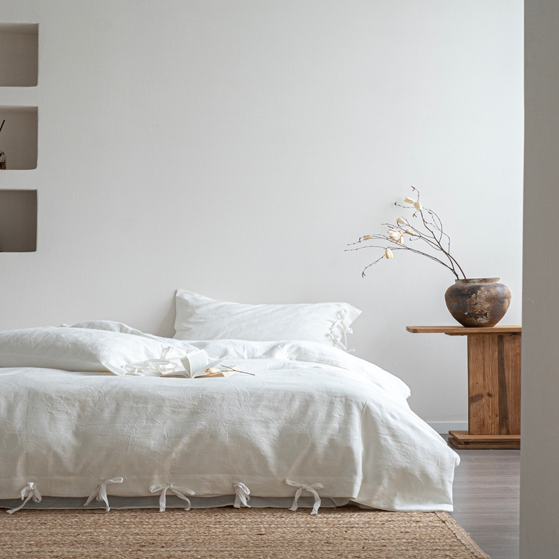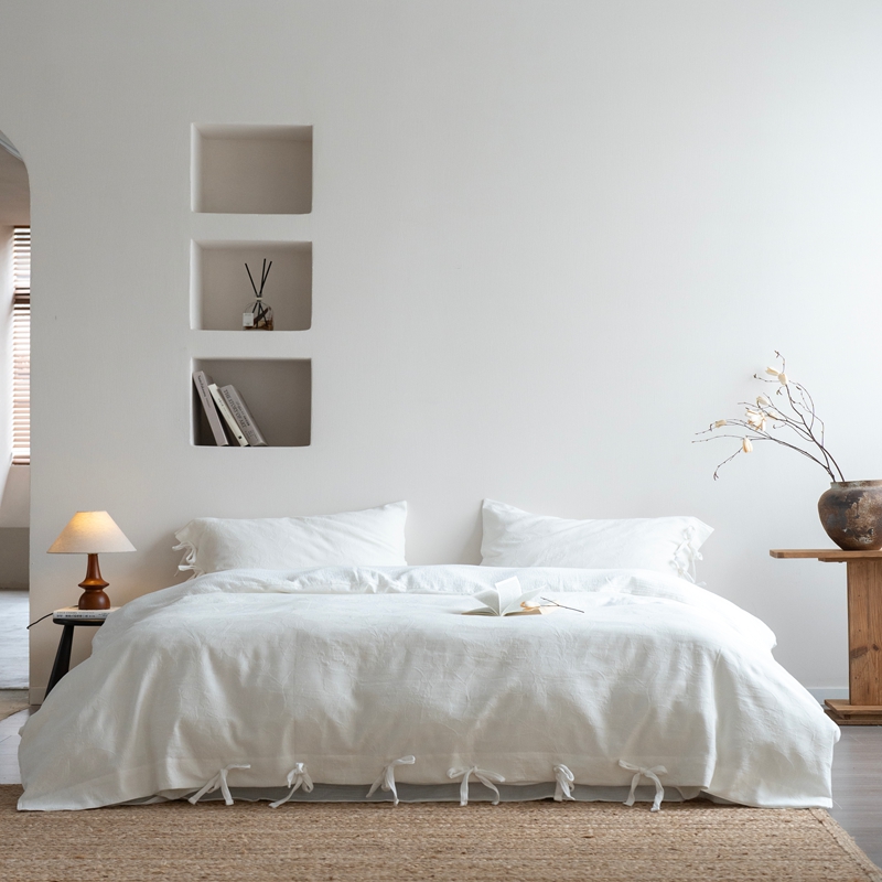 (总)璞素家居 2025新款棉麻绑带款四件套,白色