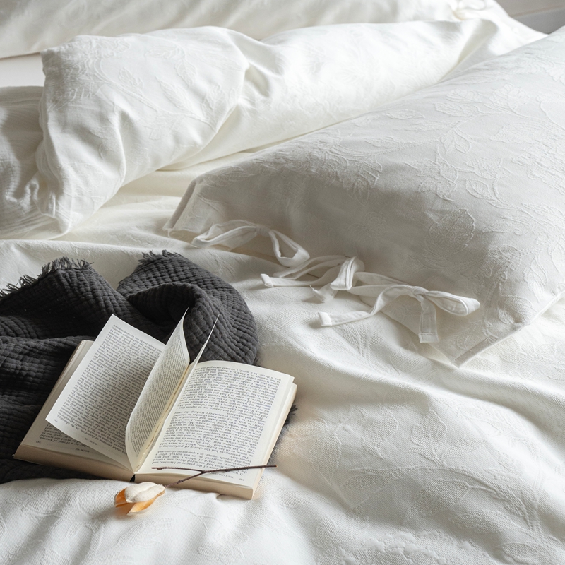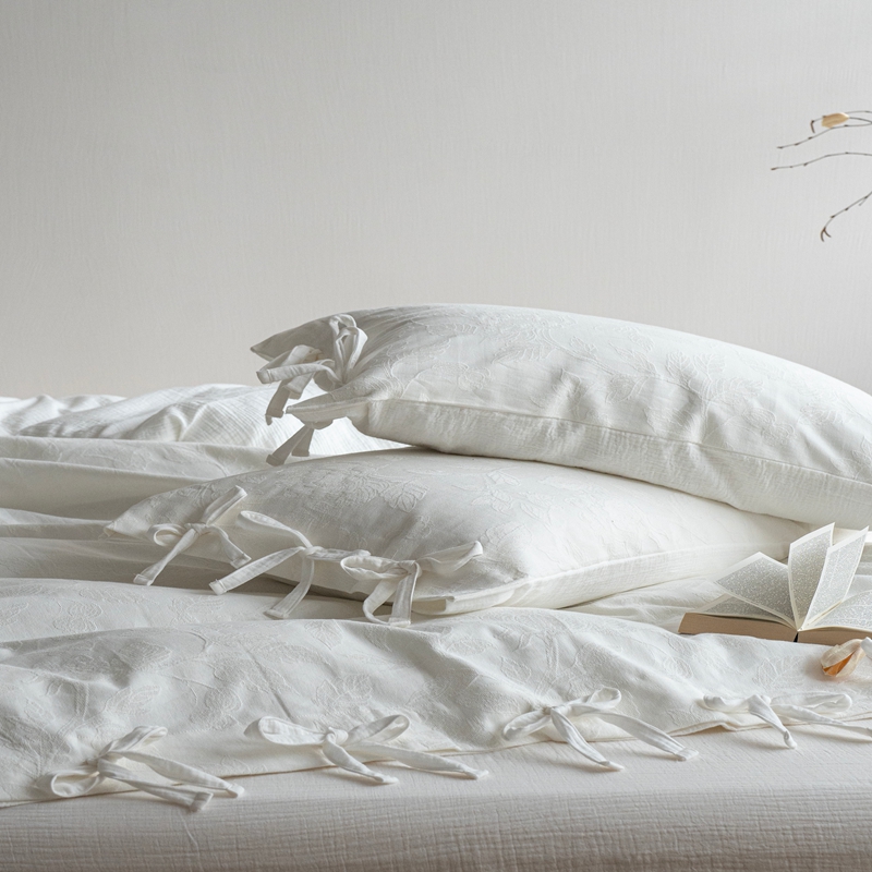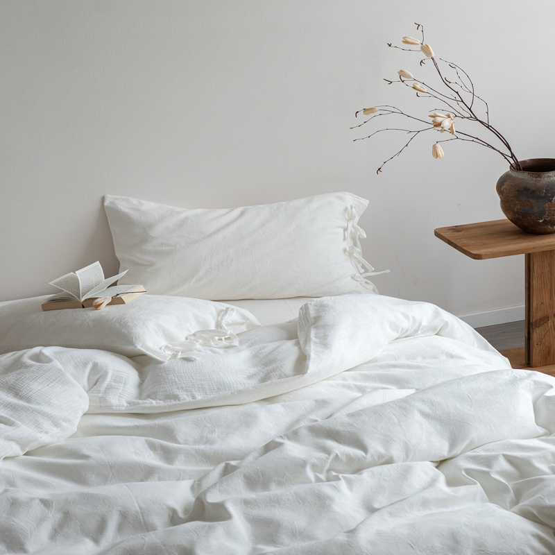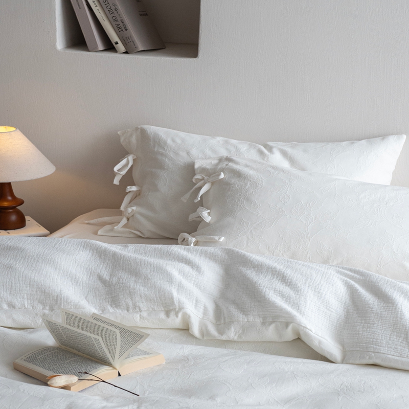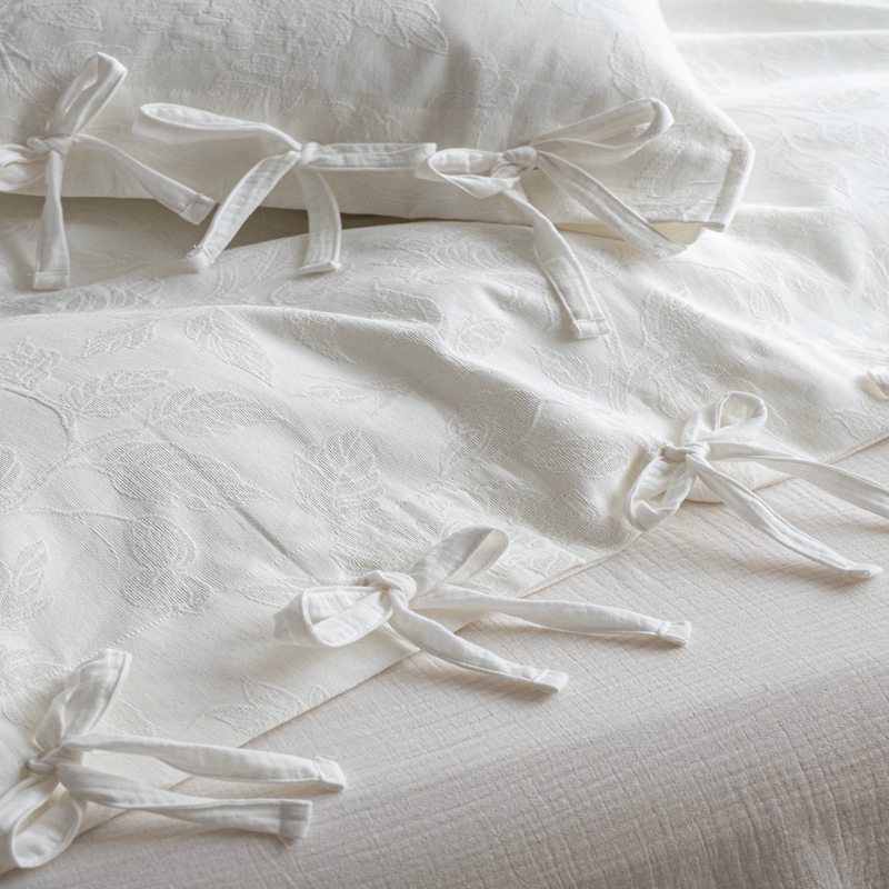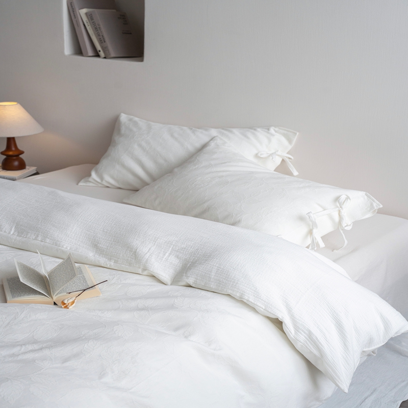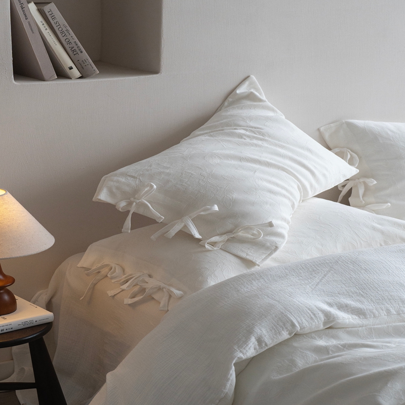 (总)璞素家居 2025新款棉麻绑带款四件套,白色