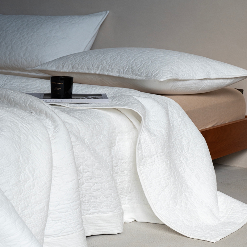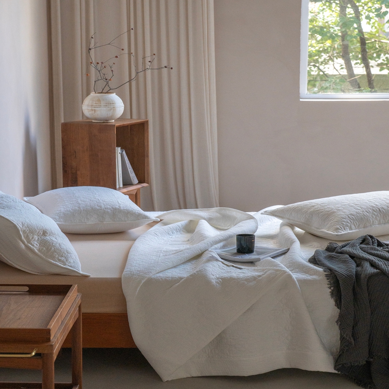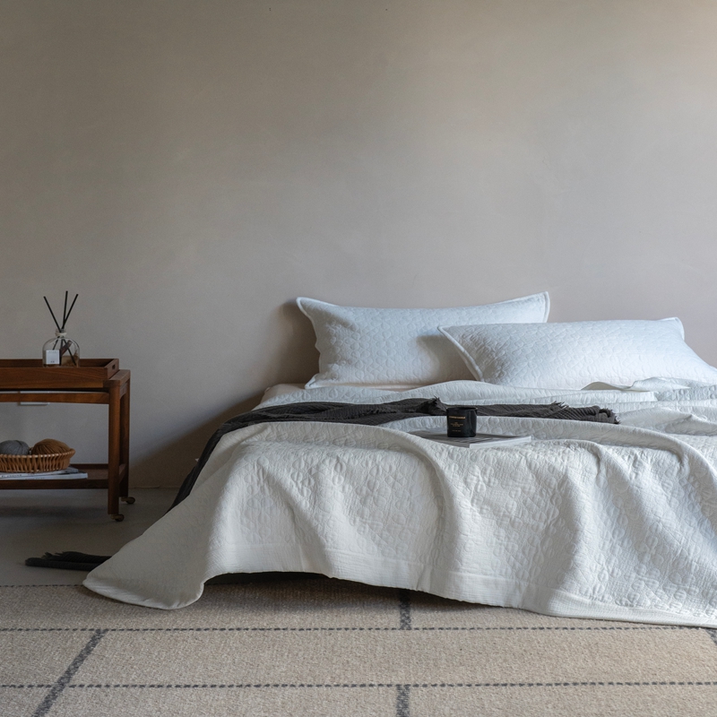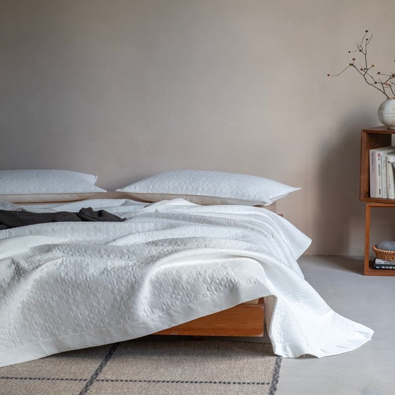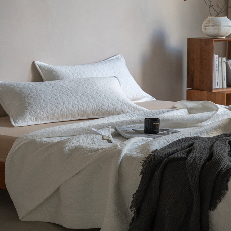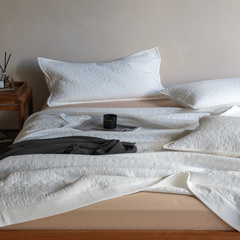 当前位置: 91家纺网 > 商品网购 > 床品套件 > 三件套 > 璞素2025新款全棉色织三层纱床盖三件套-落雪 落雪白