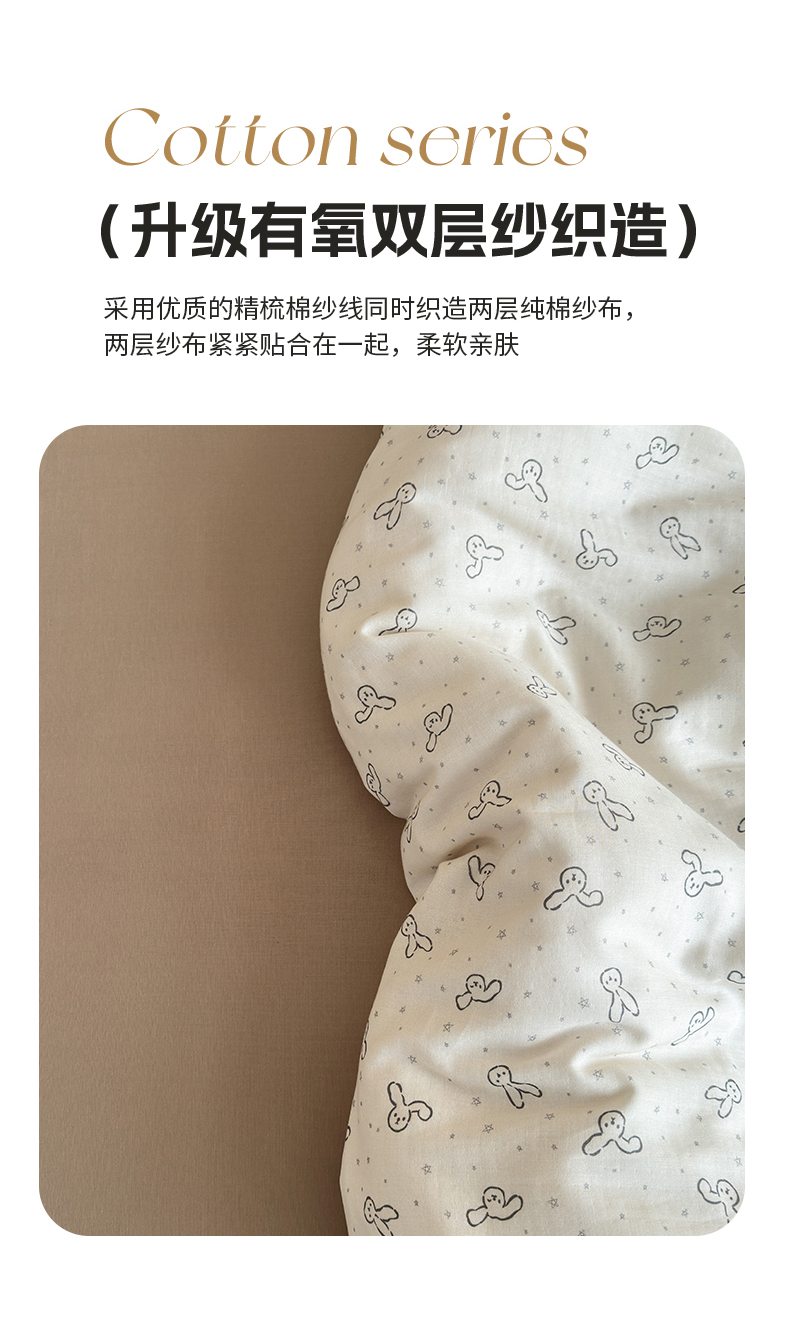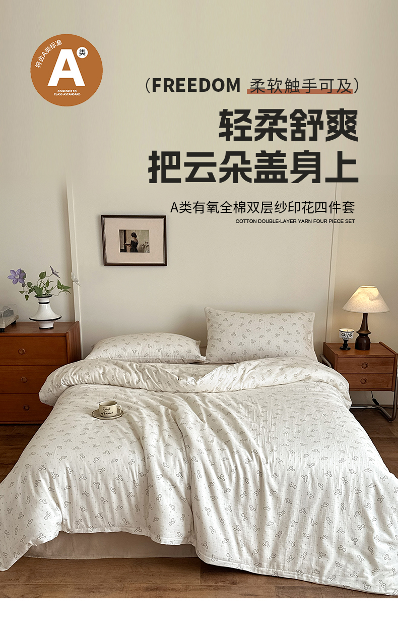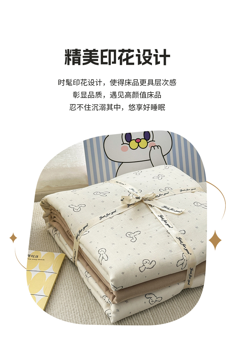 当前位置: 91家纺网 > 商品网购 > 床品套件 > 四件套 > 双层纱四件套 > 亿梵家居 2025新款A类母婴级有氧全棉纯棉双层纱纯棉印花四件套-床拍图 心萌兔