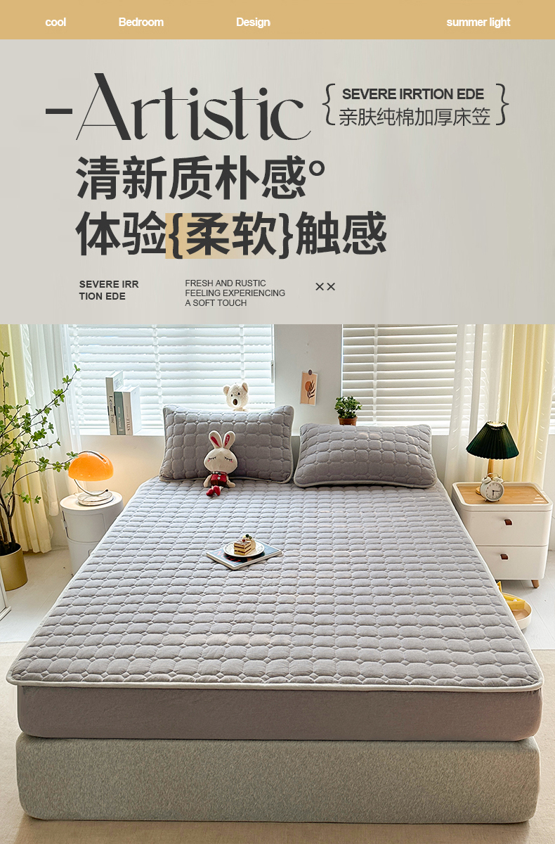 • 91家纺网 家纺一手货源 找家纺 铭成家纺 2025新款A类亲肤纯棉加厚床笠 经典冰山灰