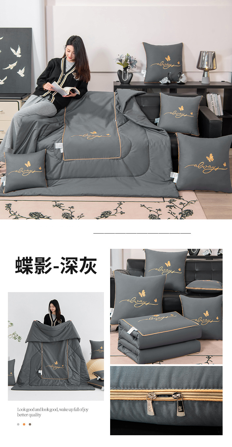 商品名称:照世家纺 2025新款柔软透气全棉抱枕被-蝶影 蝶影-紫色