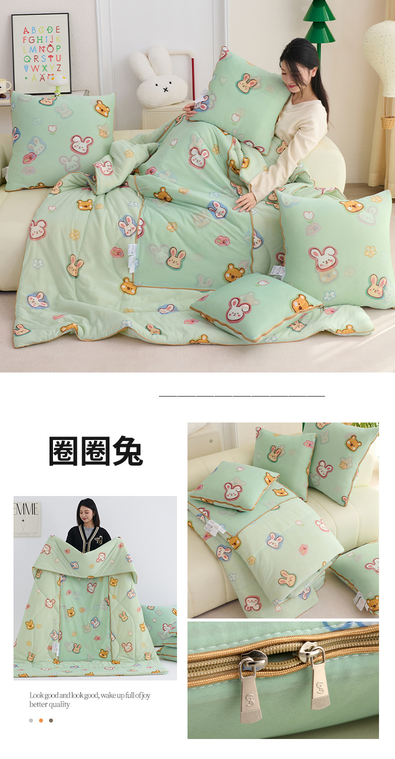 商品名称:照世 2025新款凉感丝印花抱枕被 圈圈兔