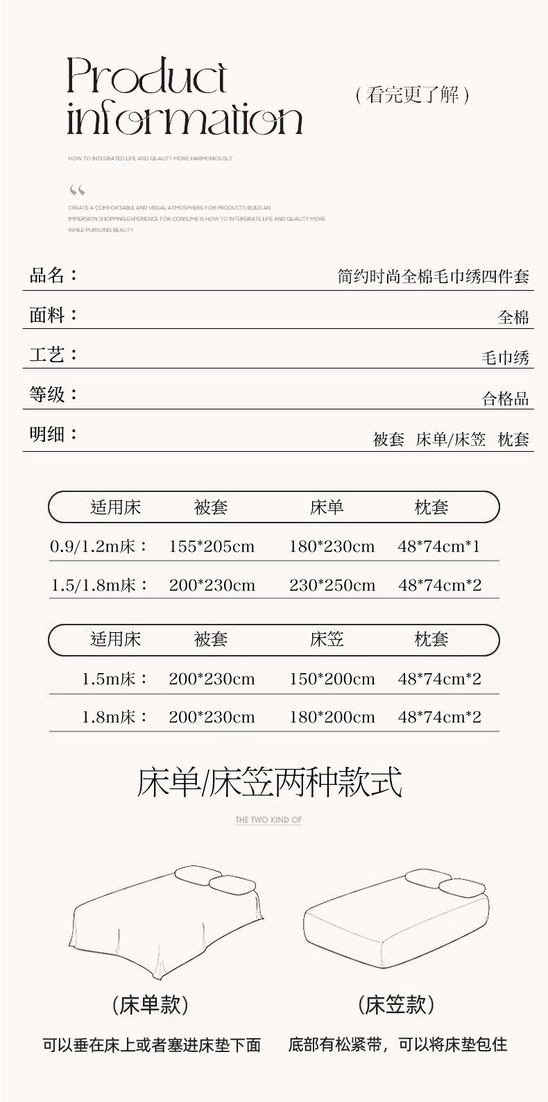 商品名称:(总)倾慕家纺 2025新款倾慕INS风毛巾绣纯棉系列四件套