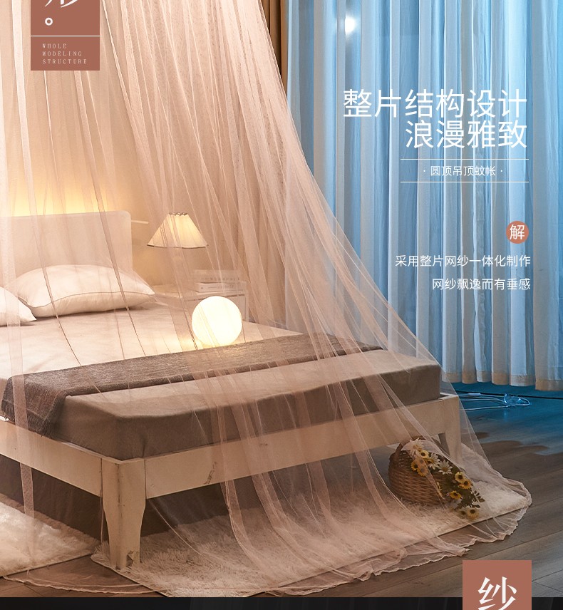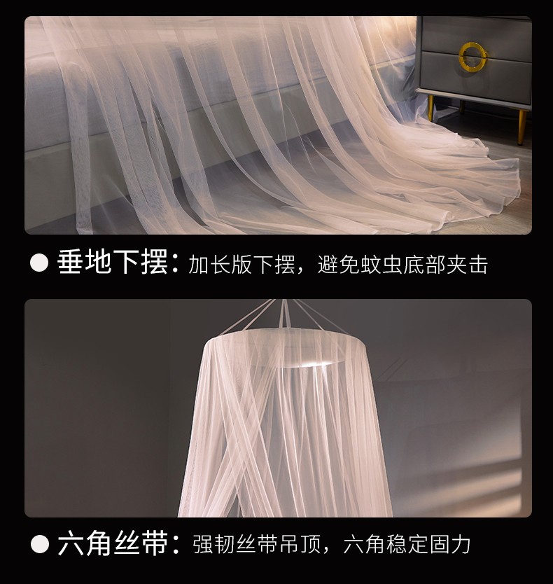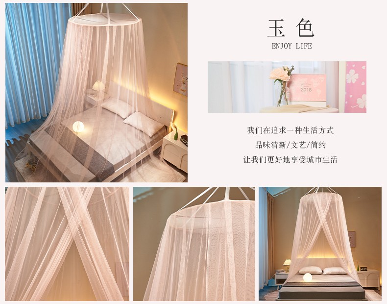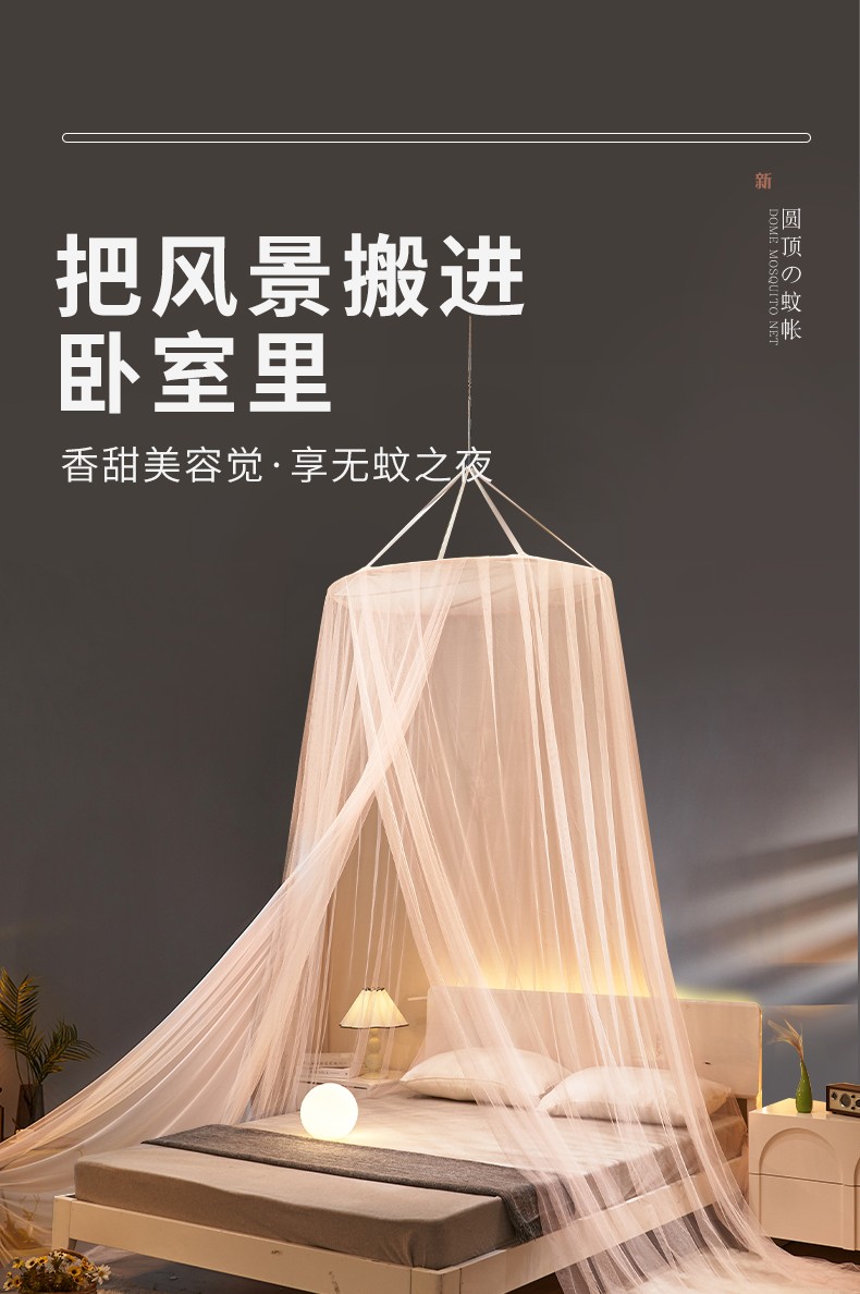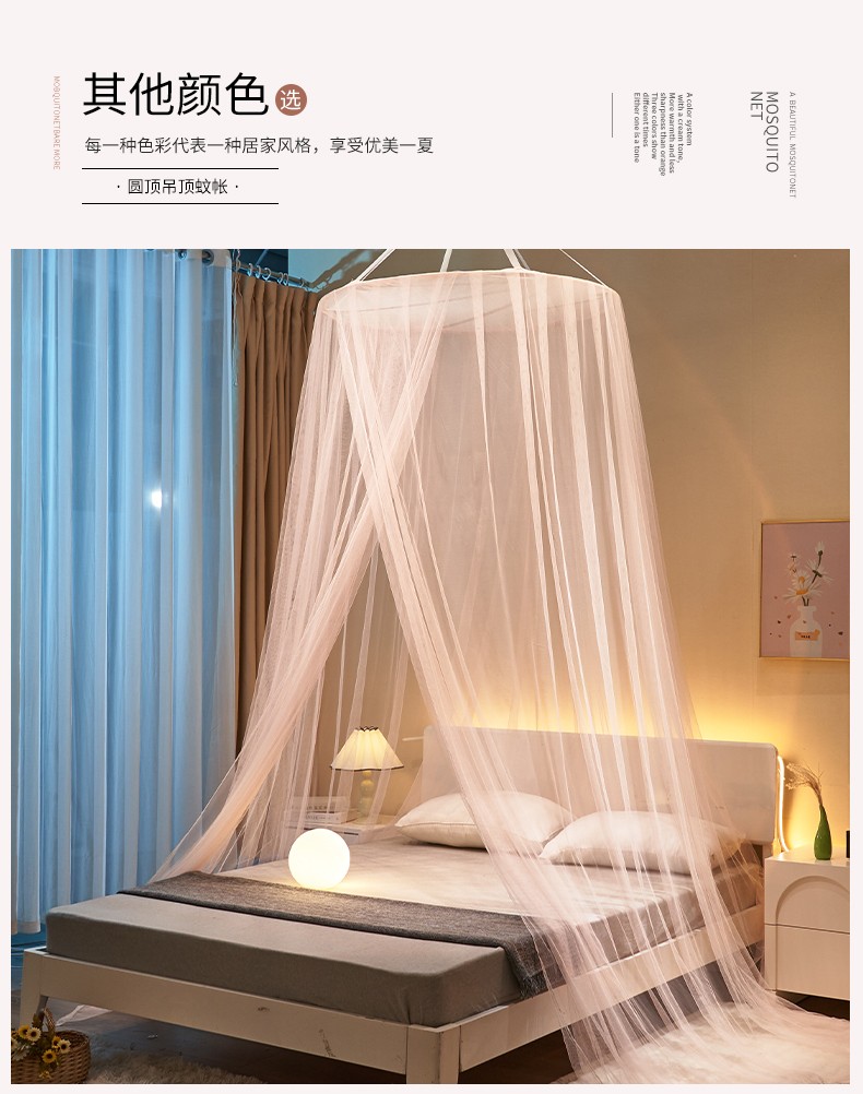 商品名称:(总)免安装圆顶公主蚊帐 家用床上成人吊顶床幔床纱加密加厚床帐