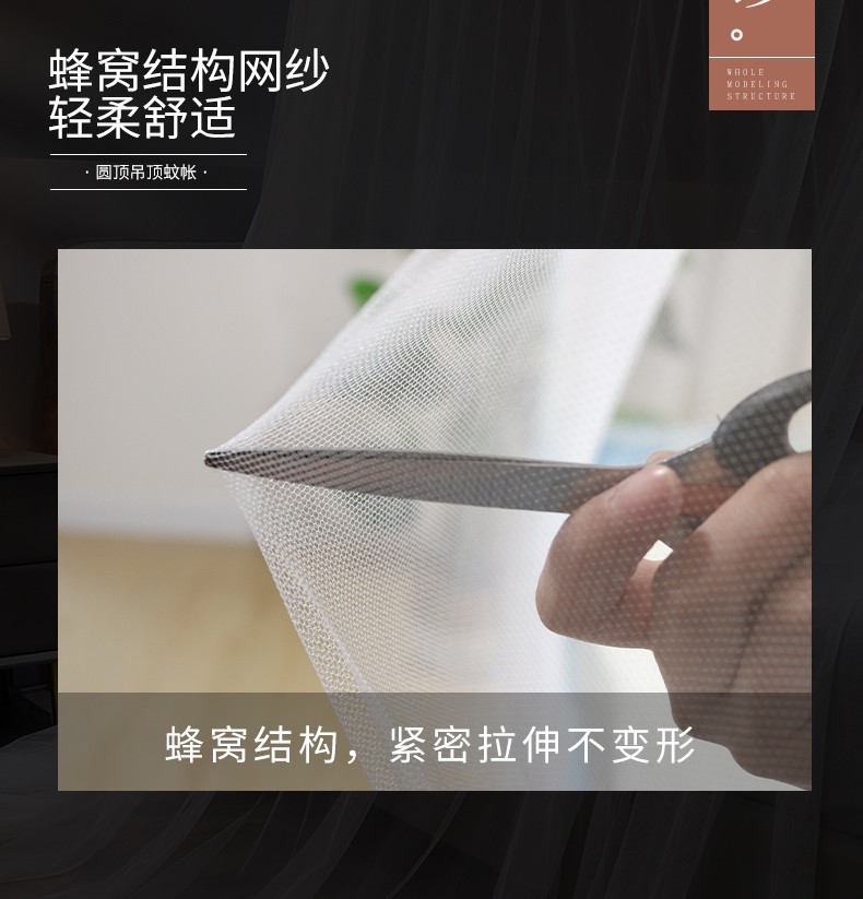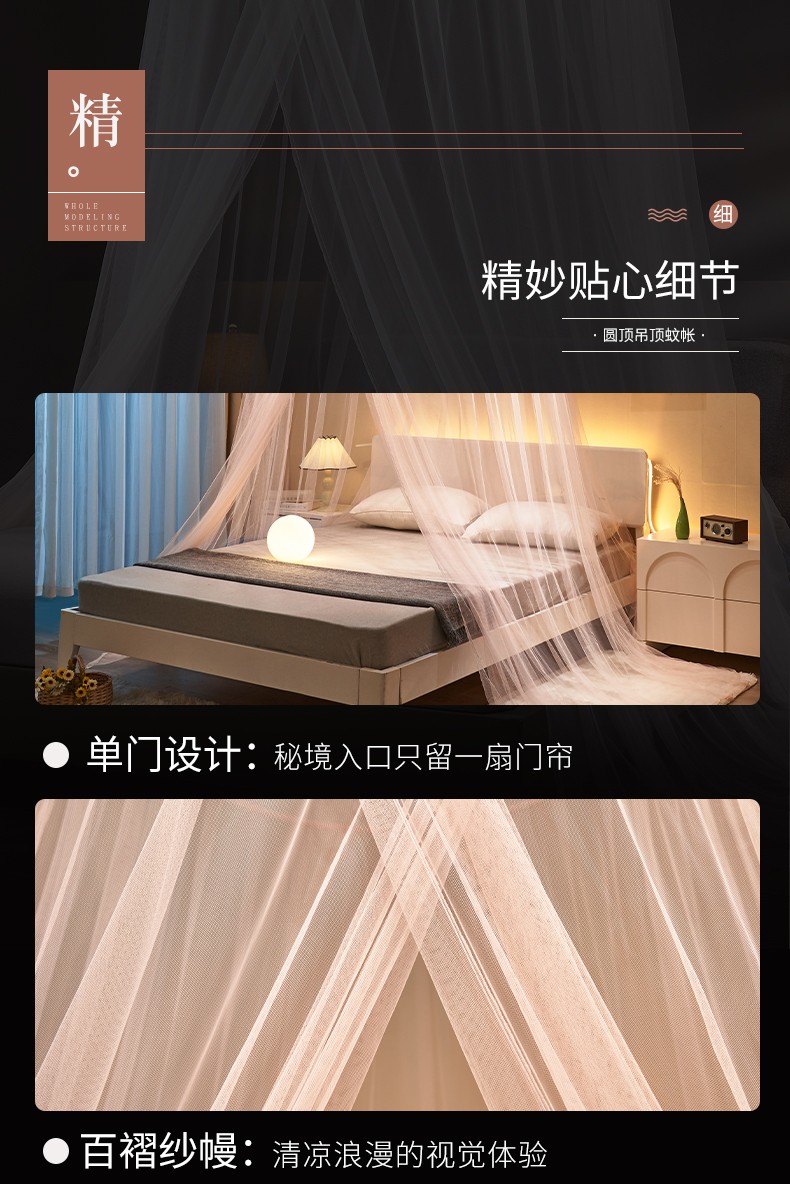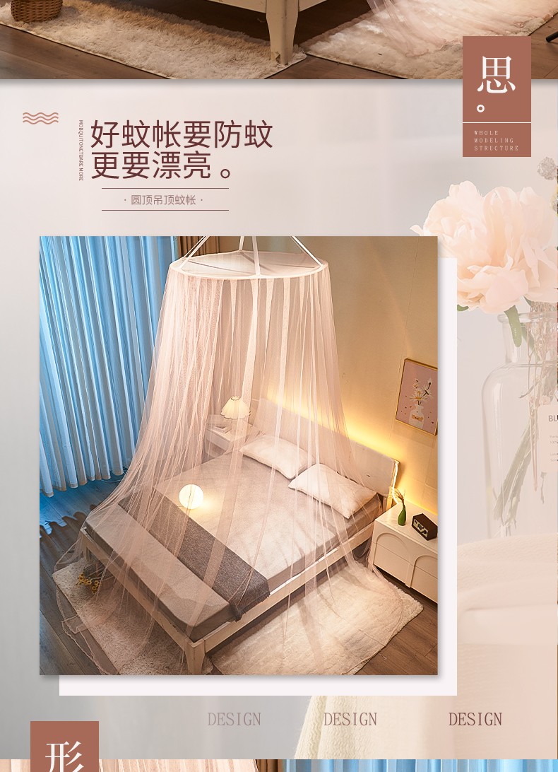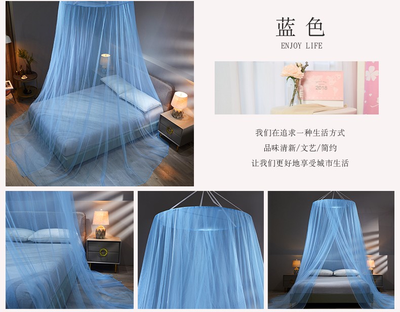 商品名称:(总)免安装圆顶公主蚊帐 家用床上成人吊顶床幔床纱加密加厚床帐
