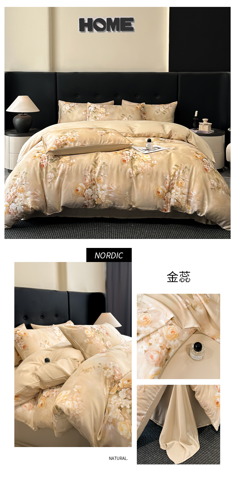 商品名称:慕晨 2025春夏新品莱赛尔天丝数码印花四件套莱赛尔夏被四件套天丝夏凉被直播热款 金蕊