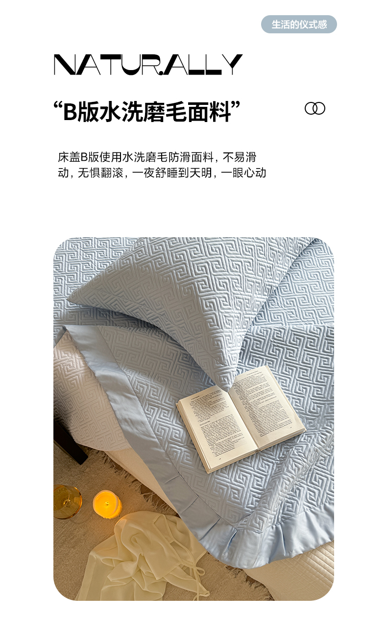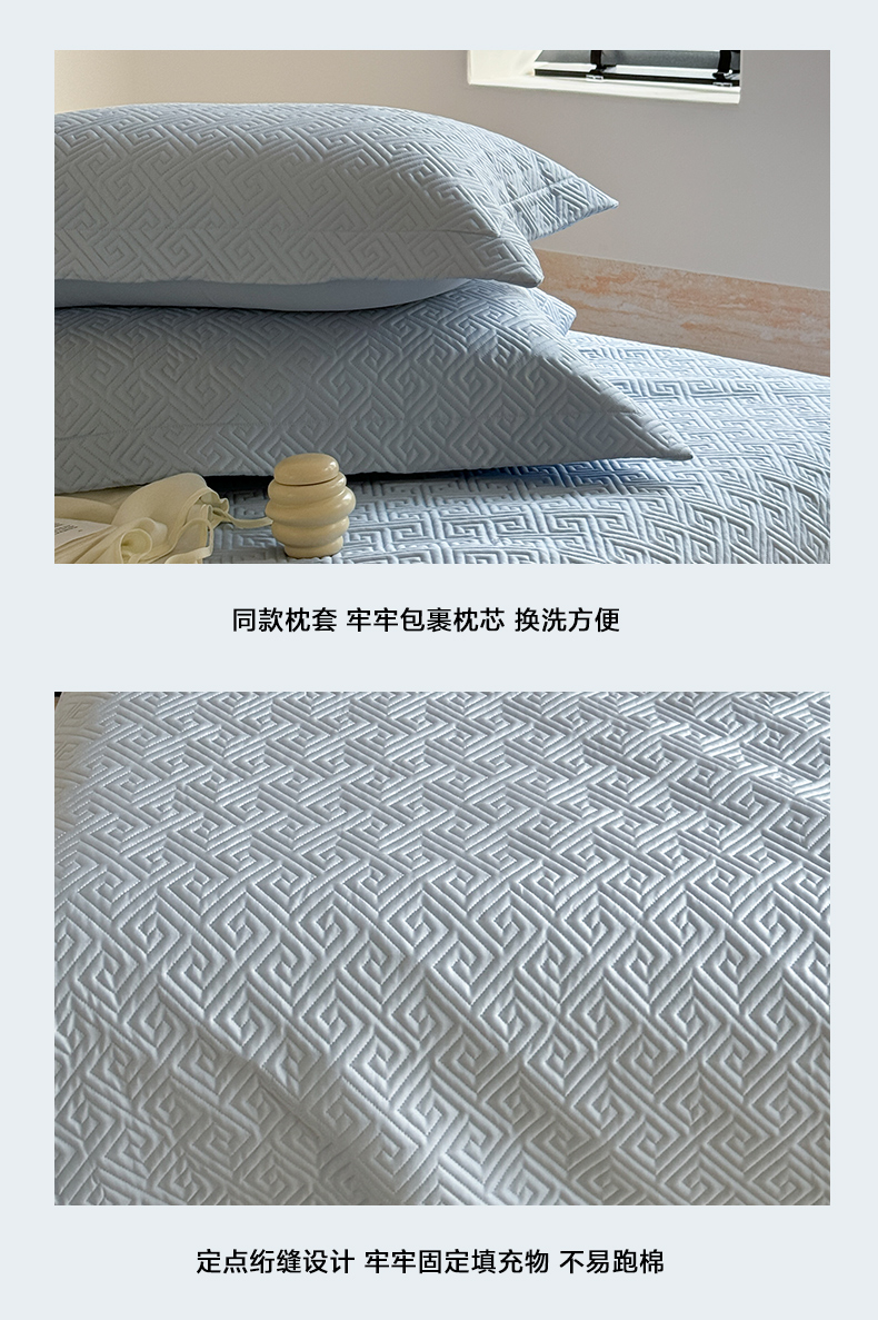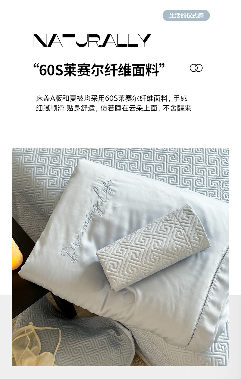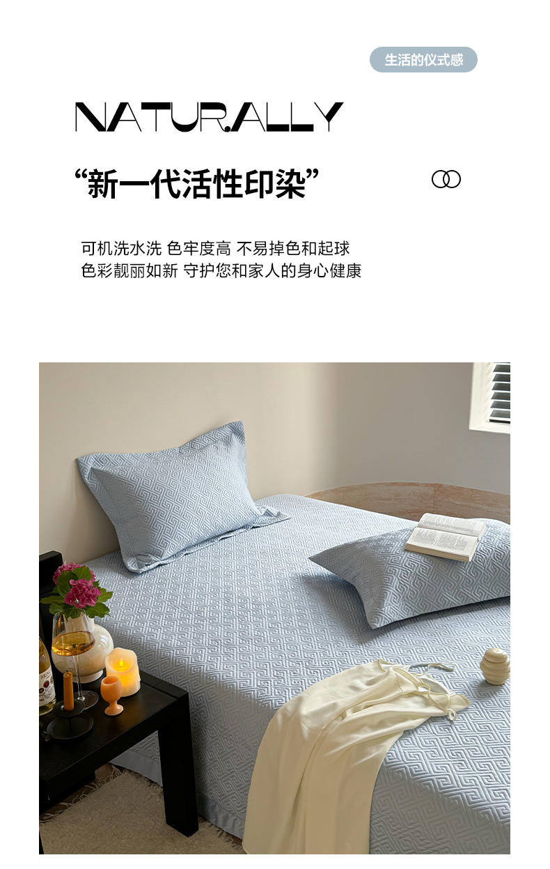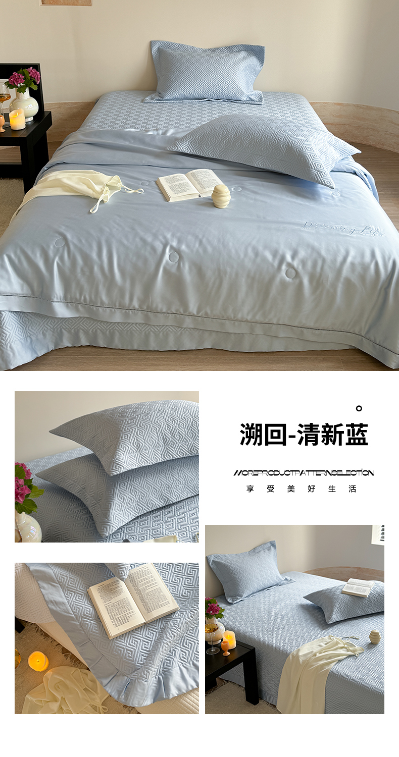 商品名称:琳可家居2025新款60S双面莱赛尔纤维纯色床盖三件套-溯回系列 溯回-清新蓝