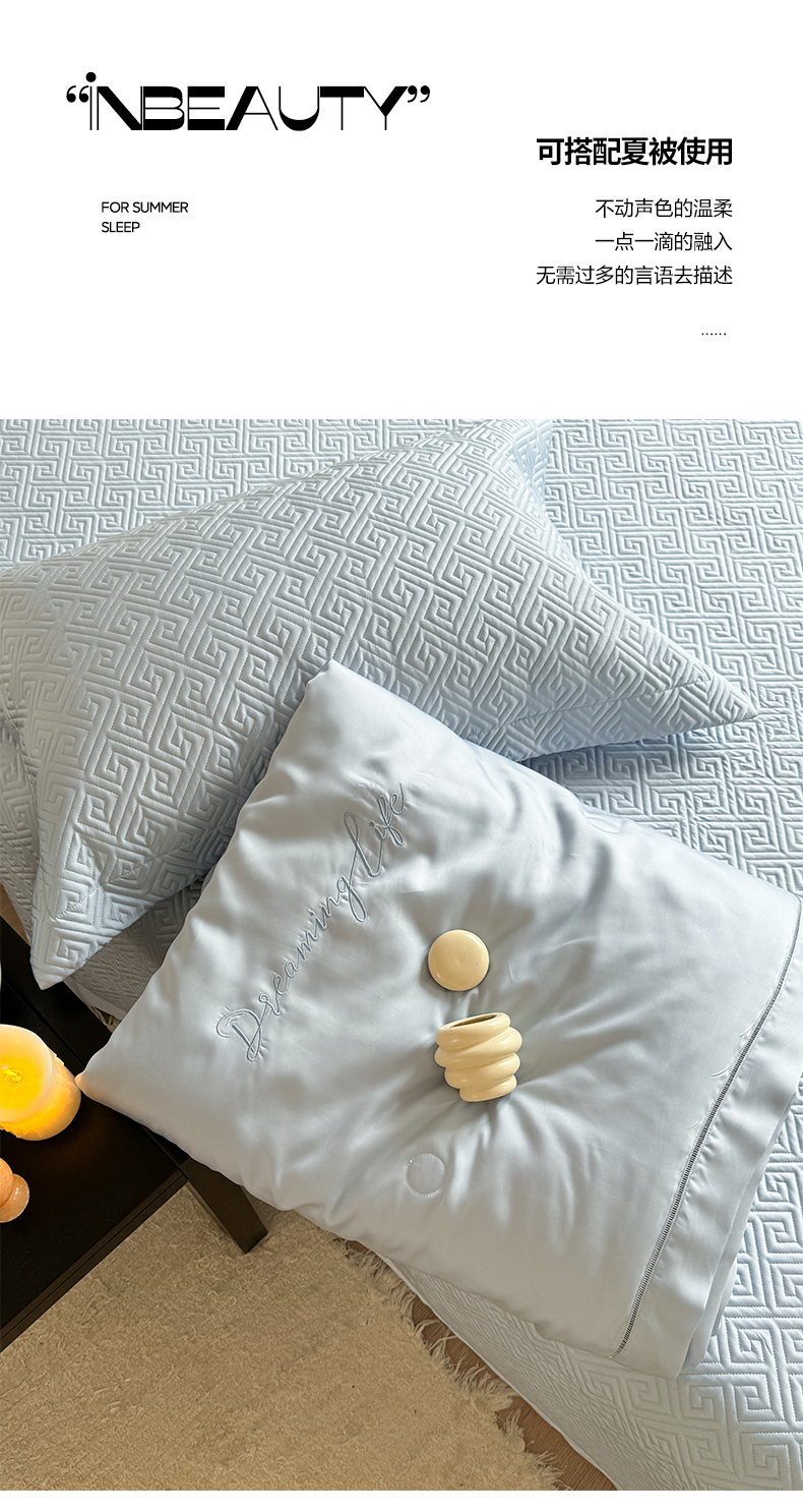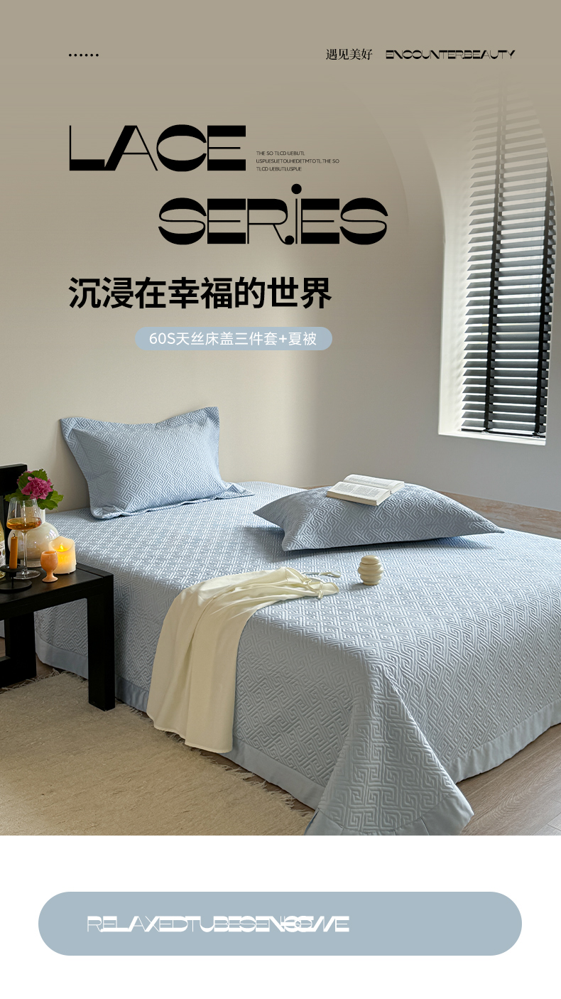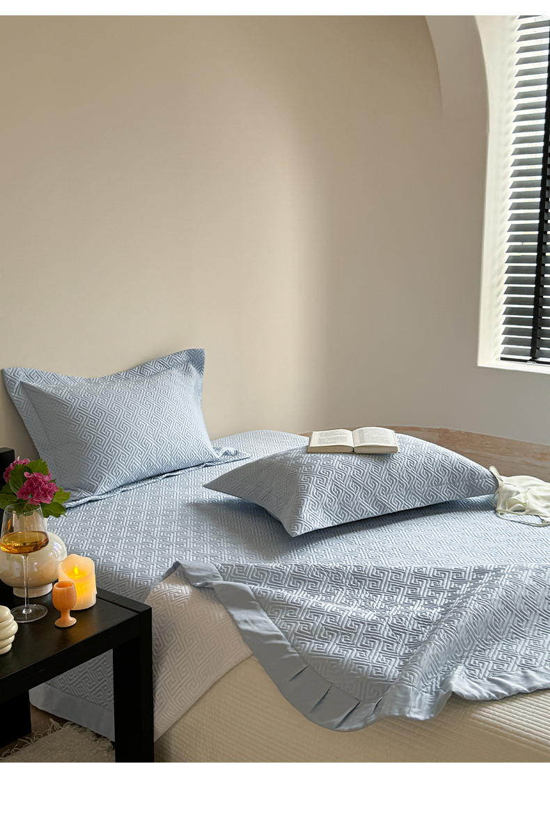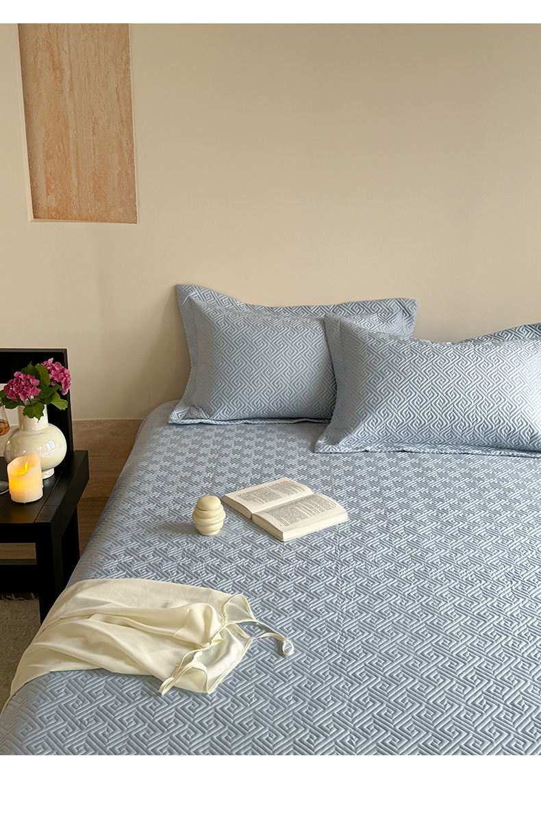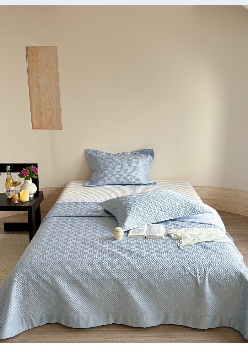 琳可家居2025新款60S双面莱赛尔纤维纯色床盖三件套-溯回系列 溯回-清新蓝