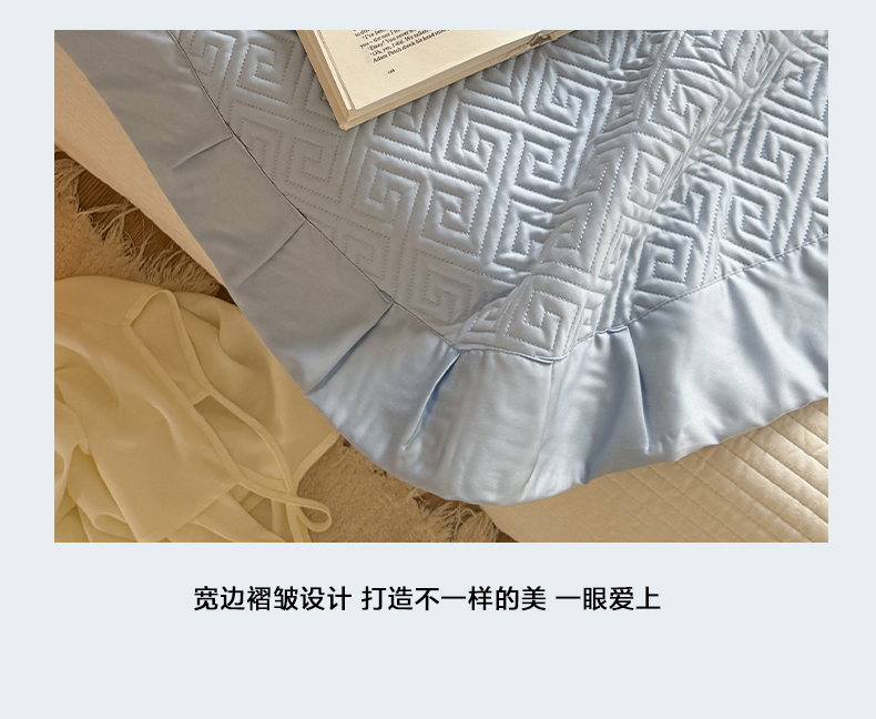 2022新款40S纯棉水洗棉韩版全棉荷叶边夹棉绗缝床盖三件套,海盐蓝,静谧灰,抹茶绿,奶油黄,千黛紫,浅豆沙,悠悠粉,云朵白,马卡桔,青草绿