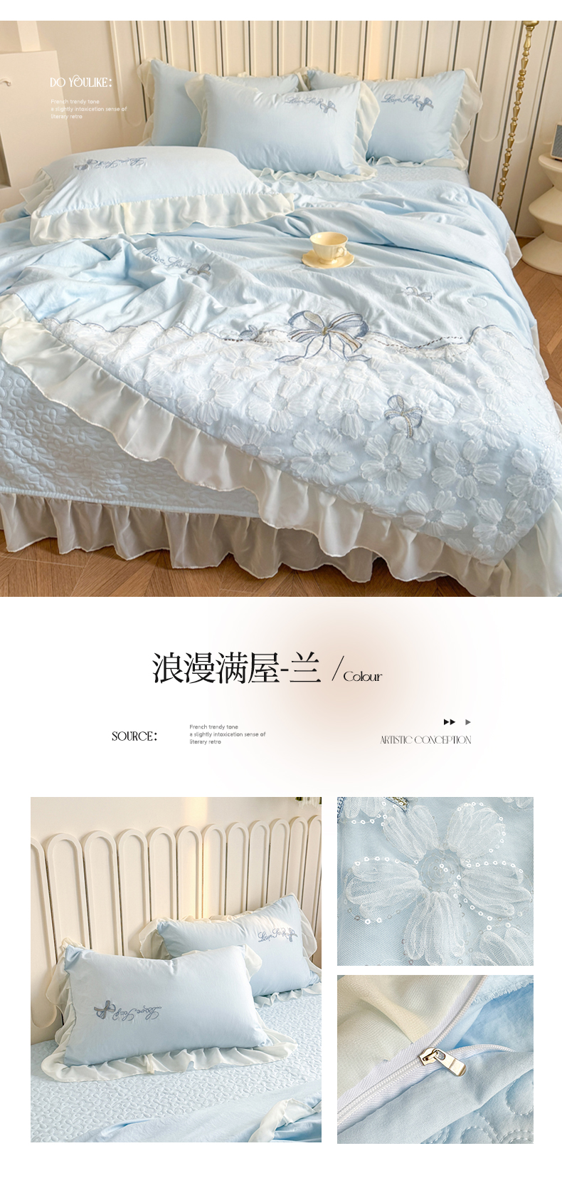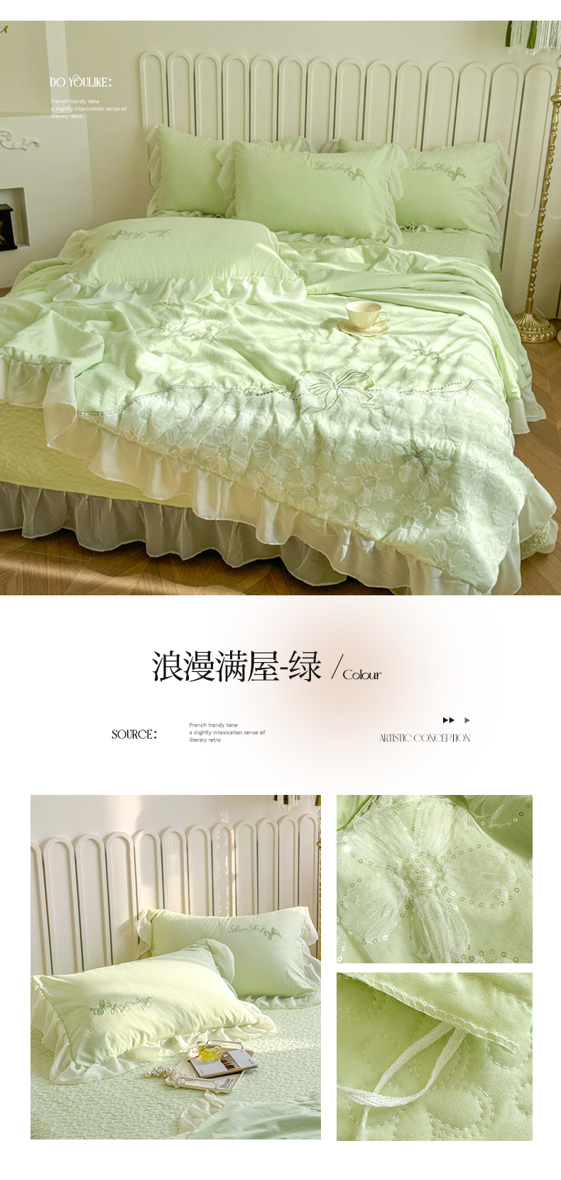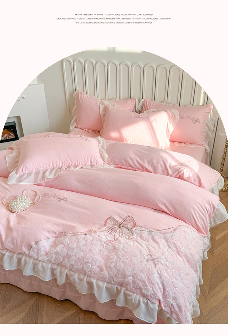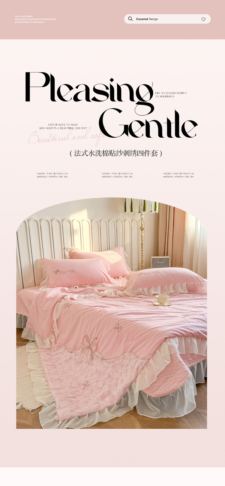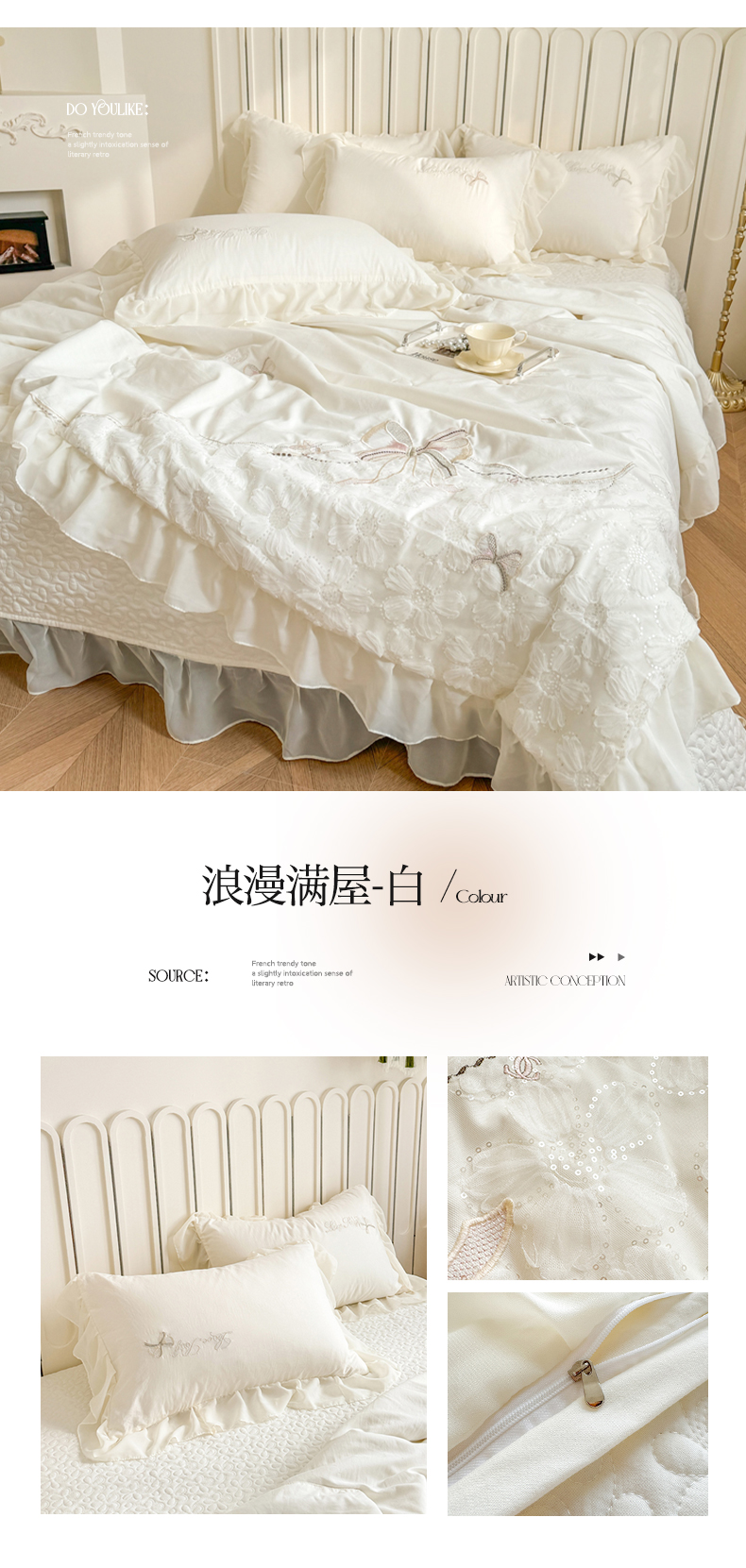 商品名称:富米莱(原臻工厂) 2025新款浪漫满屋法式高端贴纱刺绣床盖四件套 浪漫满屋-粉