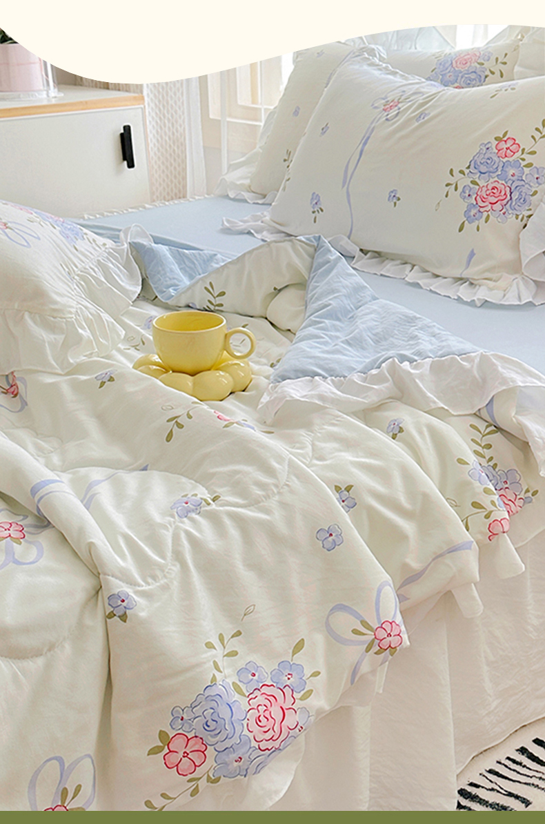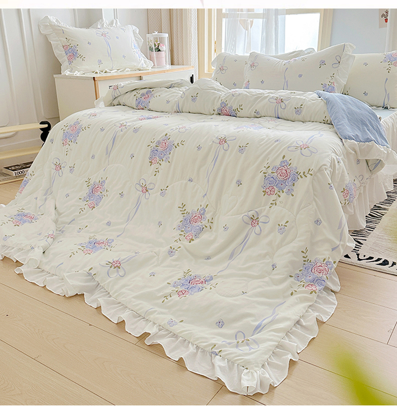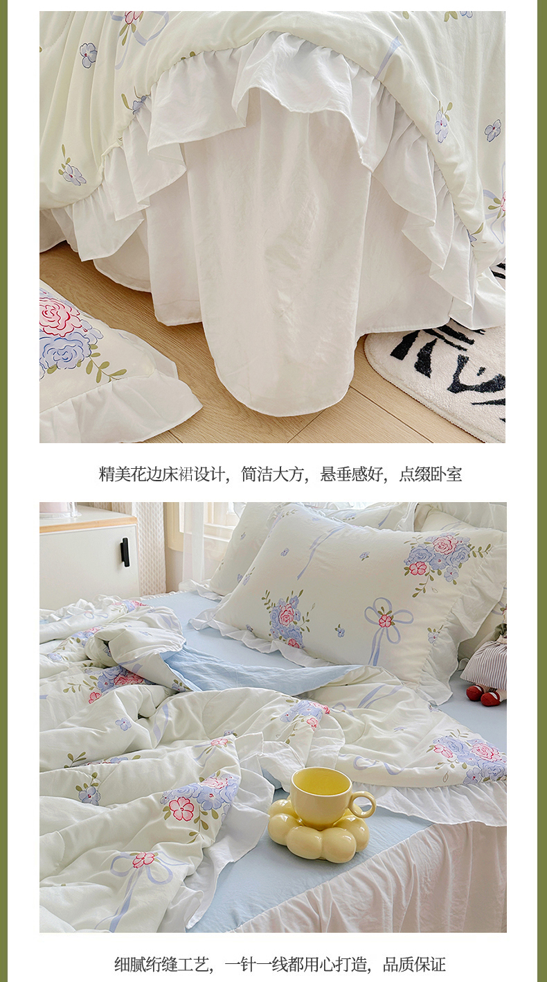 (总)家贝爱 2025新款泡泡纱水洗棉花边床单/床裙款夏被四件套夏凉被