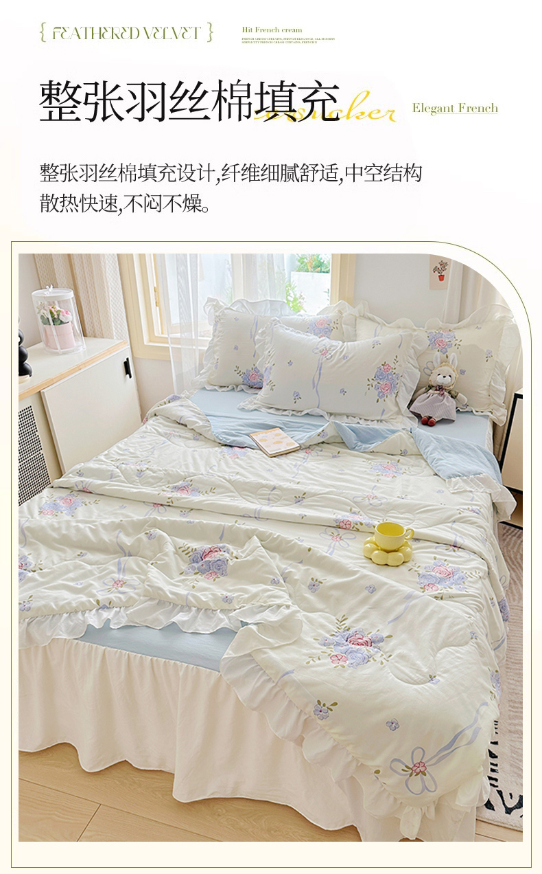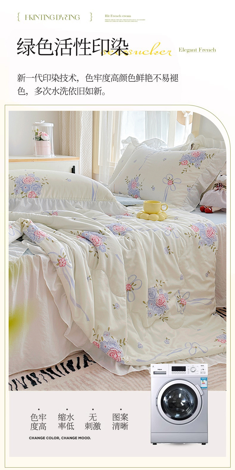 商品名称:(总)家贝爱 2025新款泡泡纱水洗棉花边床单/床裙款夏被四件套夏凉被