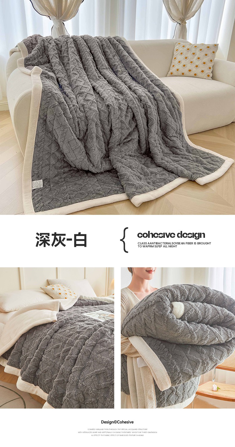 商品名称:澳梵家居 2025新款塔芙绒提花毛毯盖毯 苏梅-灰
